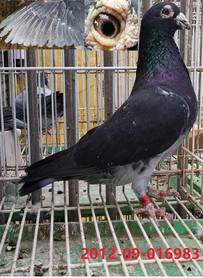 此鸽是我舍重要吴淞种雄之一,正宗吴淞老桃花。英姿勃发,聪明机警,体格健硕,让人爱不释手,曾作育出廊坊、新安千公里赛鸽多羽。父母和祖父母都为超长距离赛鸽,从鄯善、湟源、疏勒河归巢。在本舍作育正常,换地方后不保作育。