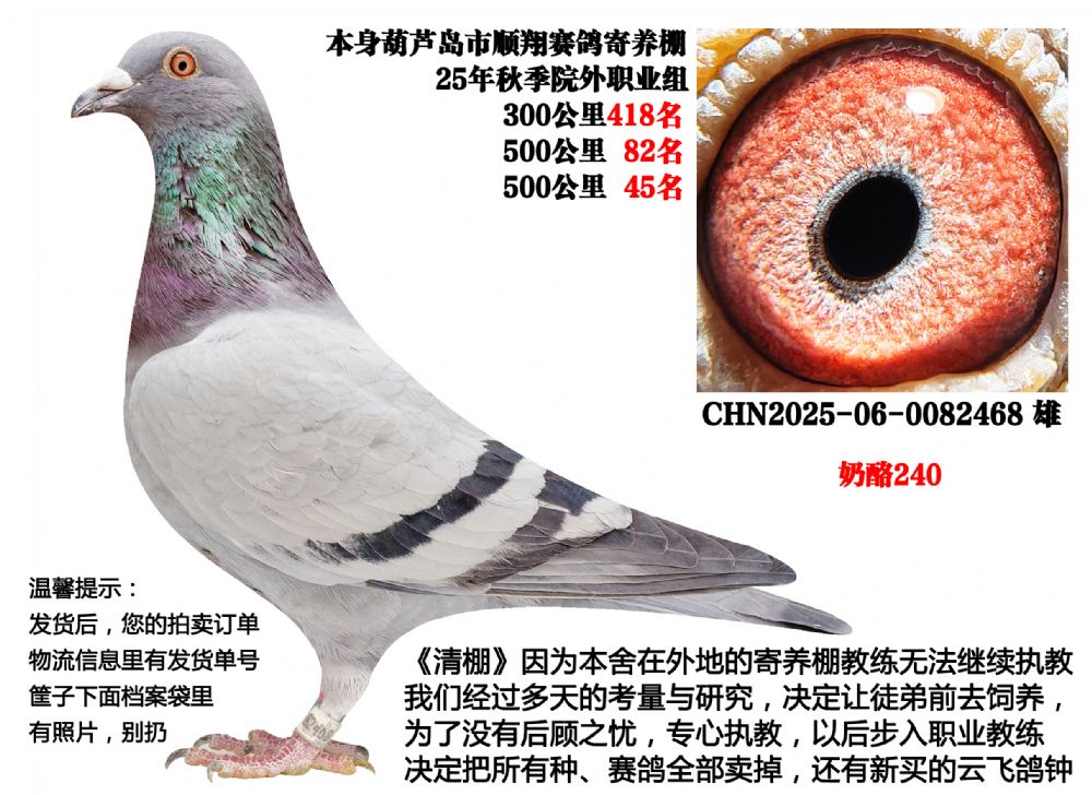- 当前查看拍卖鸽:25年春季成绩鸽(奶酪240)