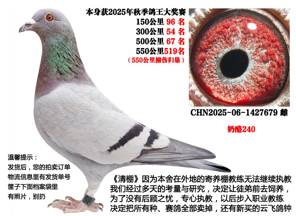- 当前查看拍卖鸽:25年秋季高位成绩鸽(奶酪240)