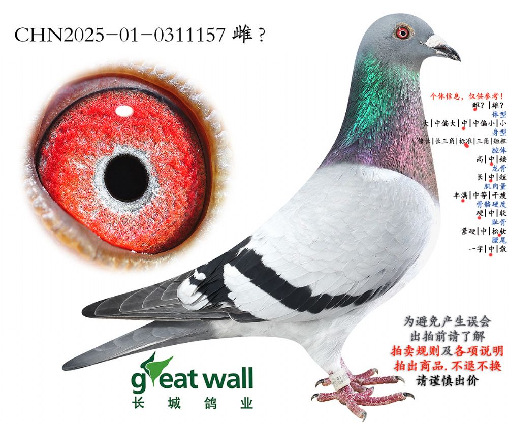 因拍卖鸽均是未做育过的种鸽或幼鸽,图内所标雌雄仅供参考,实际性别已实物为准。不做退换理由。