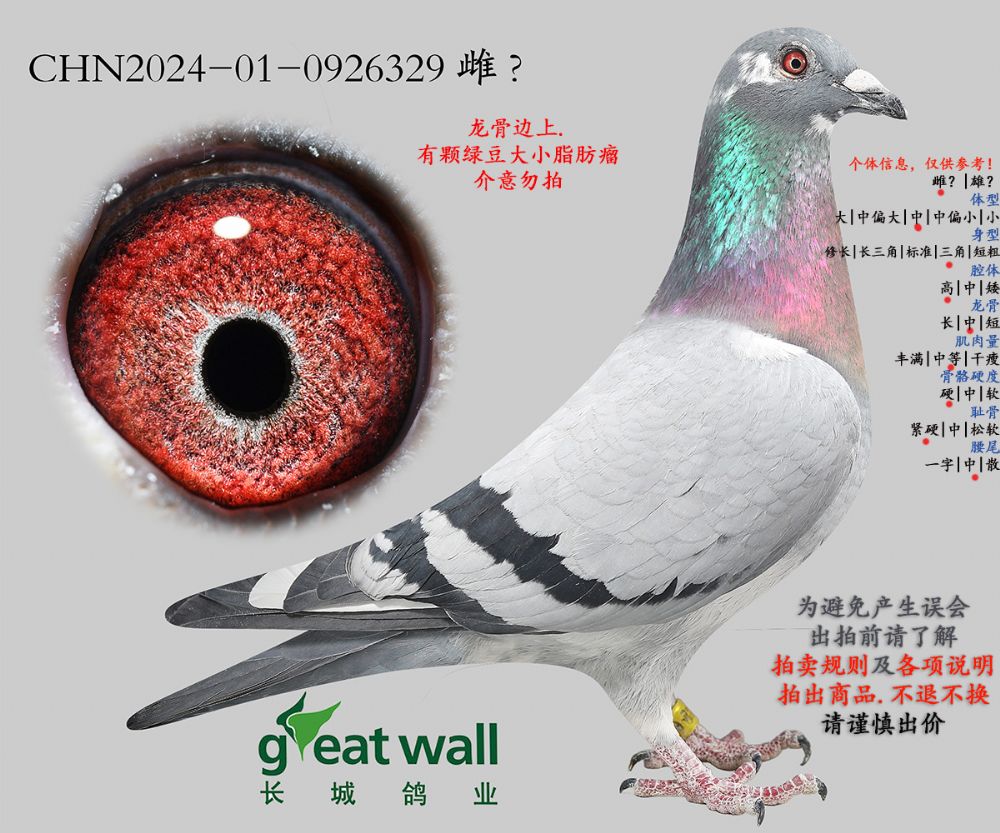 因拍卖鸽均是未做育过的种鸽或幼鸽,图内所标雌雄仅供参考,实际性别已实物为准。不做退换理由。