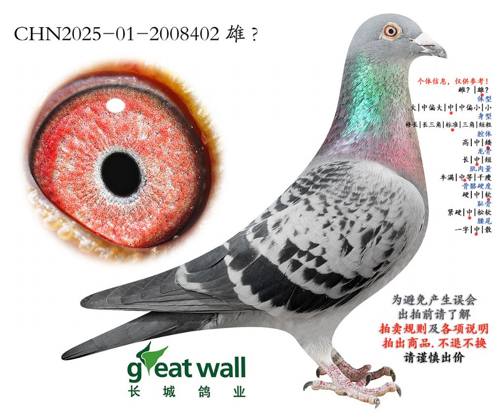 因拍卖鸽均是未做育过的种鸽或幼鸽,图内所标雌雄仅供参考,实际性别已实物为准。不做退换理由。