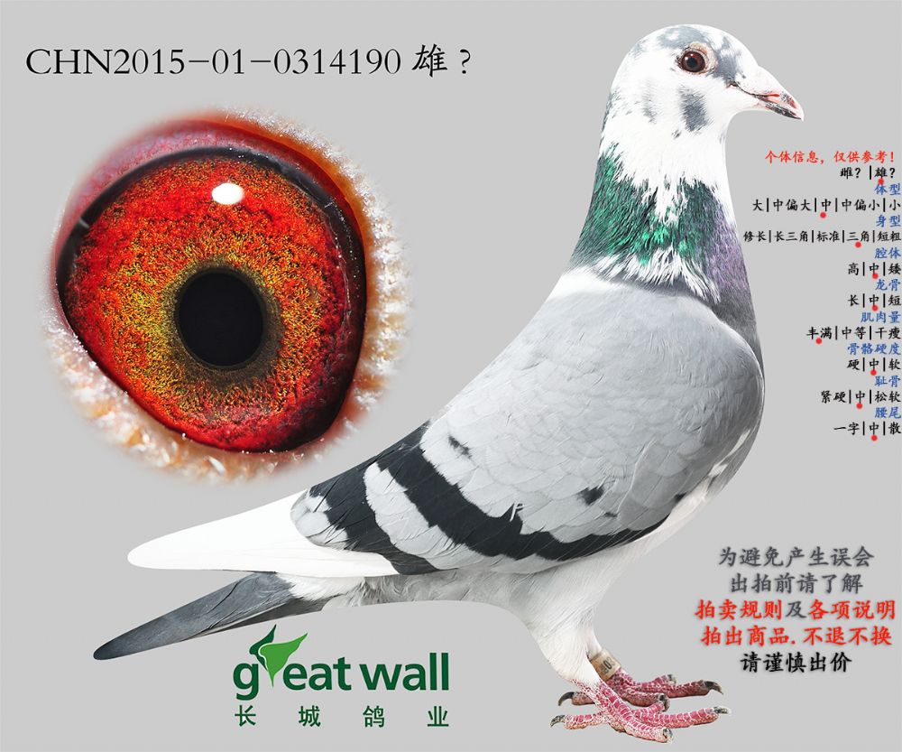 因拍卖鸽均是未做育过的种鸽或幼鸽,图内所标雌雄仅供参考,实际性别已实物为准。不做退换理由。