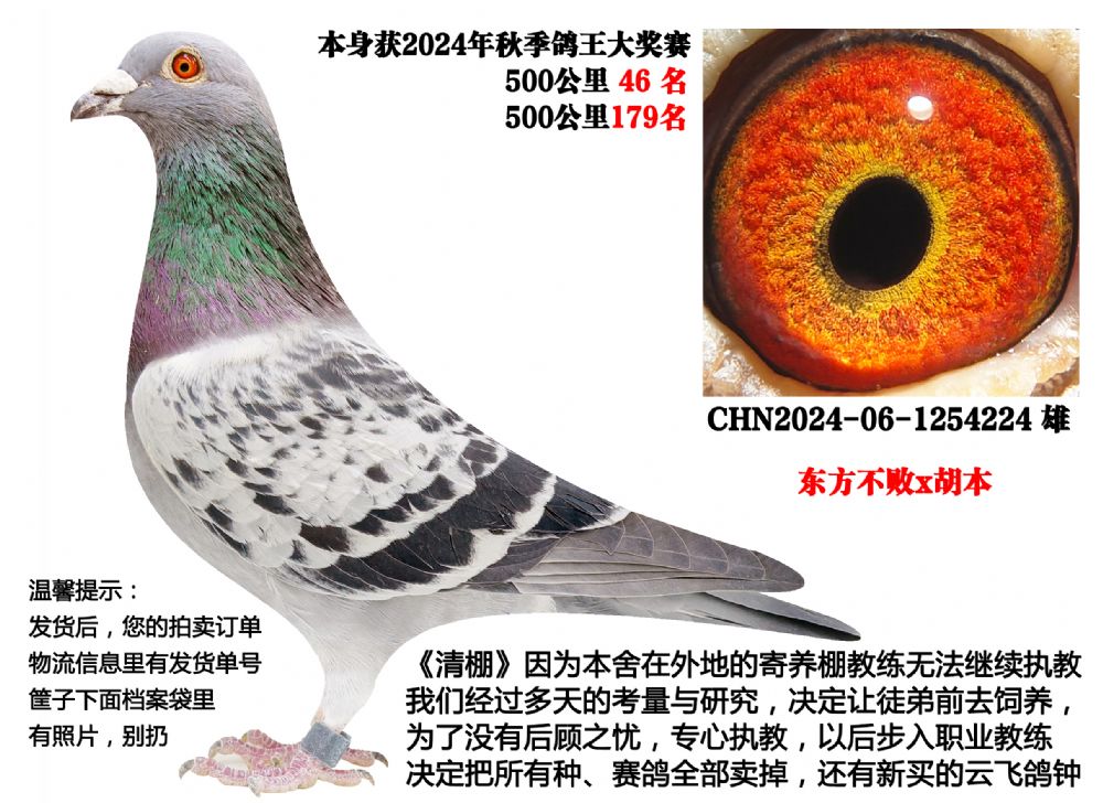 4、本期拍卖鸽有血统书的都已经上传,没有上传的代表没有血统书及足环证,介意勿拍,以免后续发生不必要麻烦。