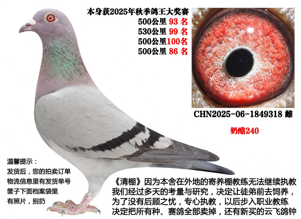 - 当前查看拍卖鸽:25年秋季4次500公里,4次前百名(奶