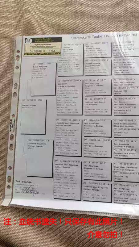 父:DV02098-2011-222 根特.普朗格 大铭鸽“无环号”直孙