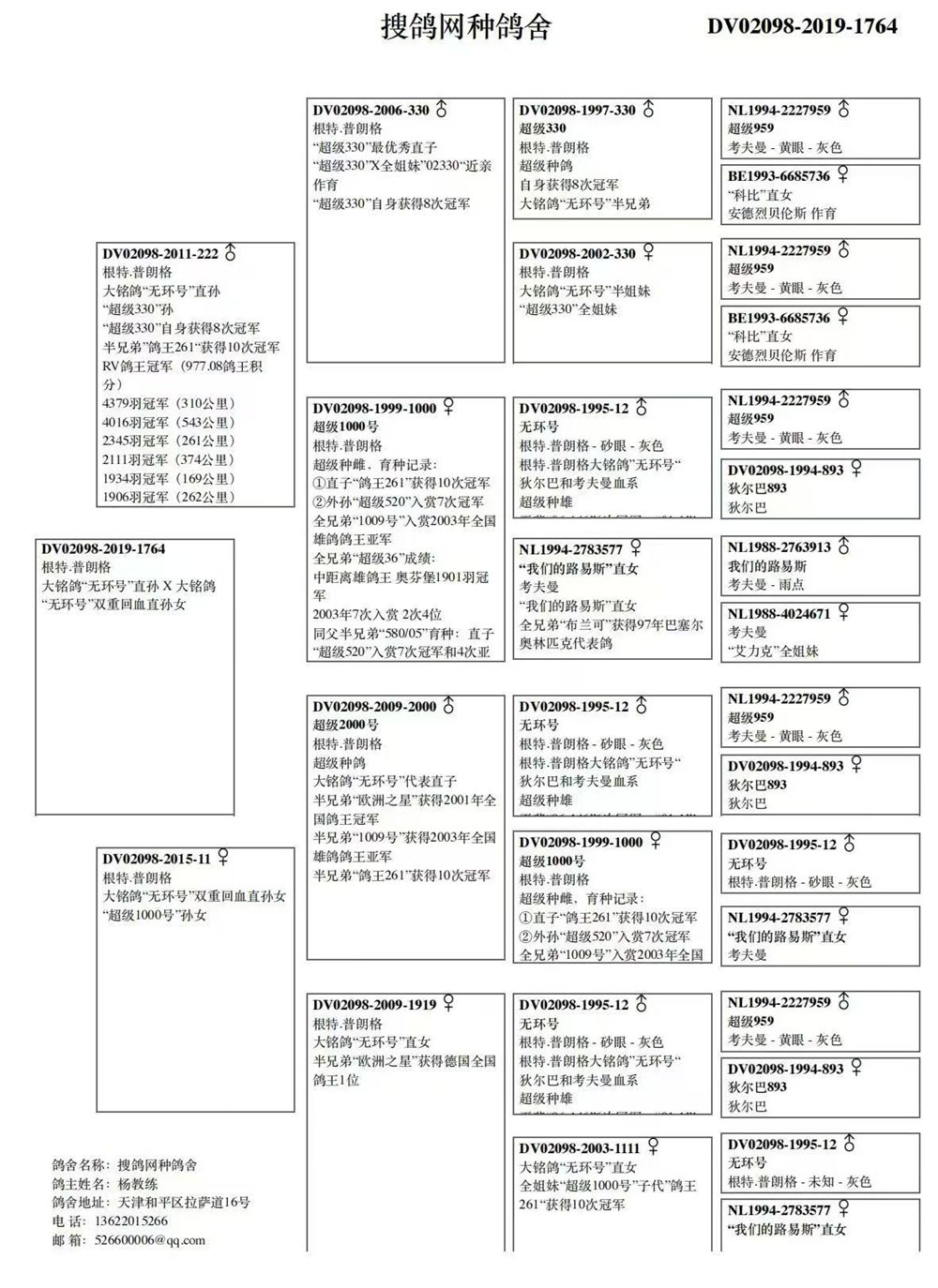 母:DV02098-2015-11 根特.普朗格 大铭鸽“无环号”双重回血直孙女;