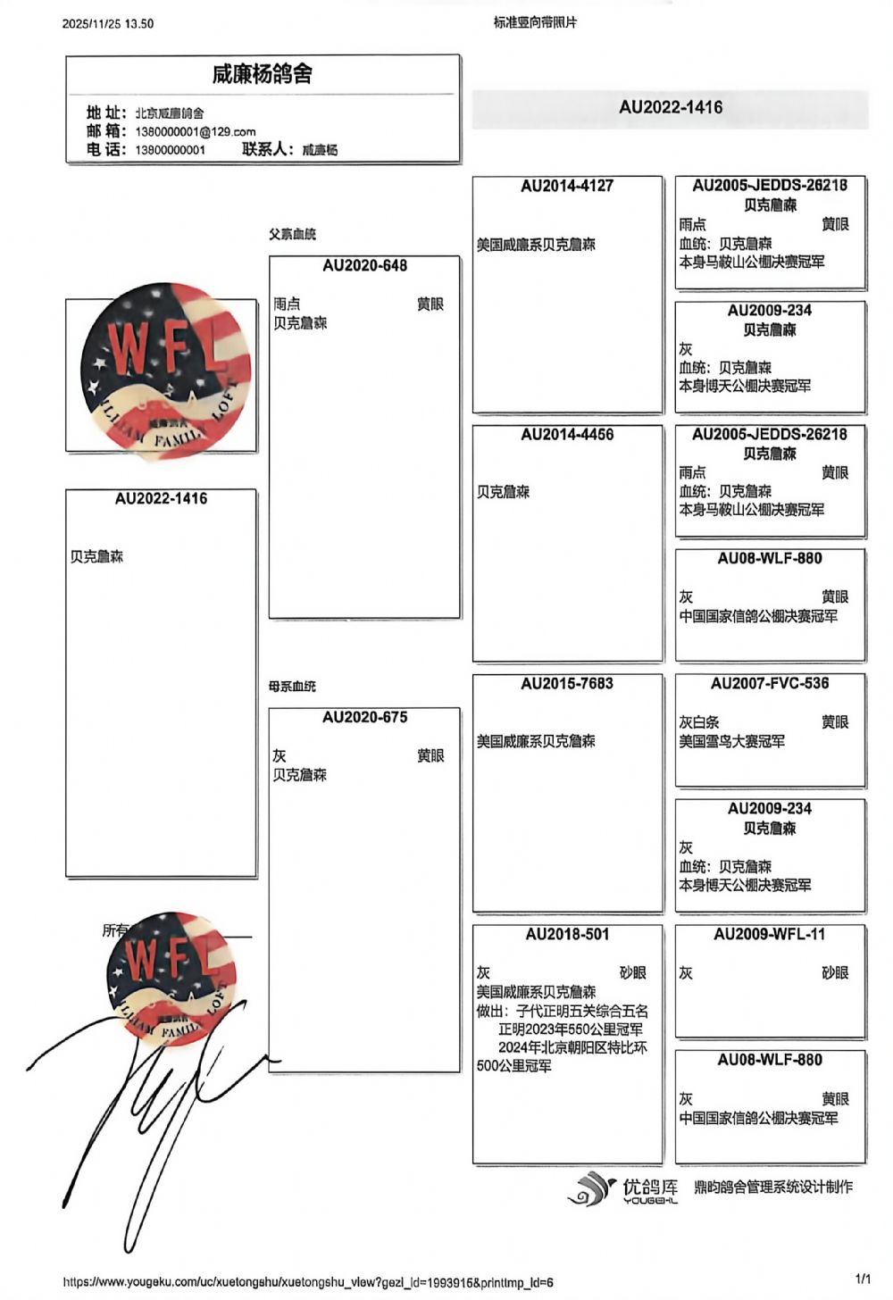 1656825 鸽王7名X公棚冠军 直孙 ¥1000元 0次