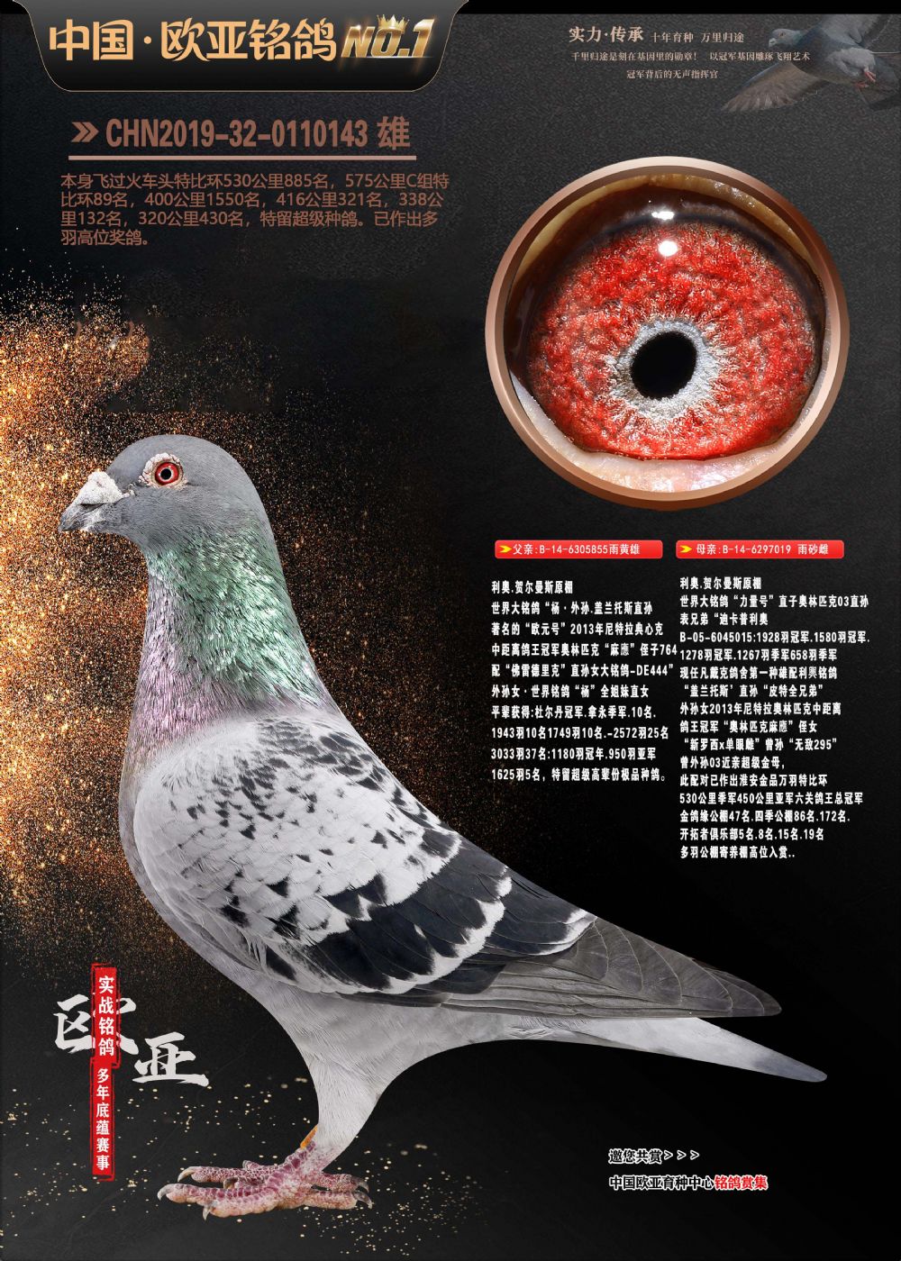 24年秋南京特比环欧亚荣获大团体冠军.小团体冠军551公里大特比13名.14名.16名.19名.20名.21名.24名.26名.27名.28名.42名.52名.54名.57名.65名.66名.68名.70名.71名.72名.74名.76名.80名.82名.83名.84名.85名.86名.90名.92名.110名.116名.121名.122名.128名.131名.158名.161名.164名.165名.166名.172名.174名.177名.182名.195名.196名.201名.205名.208名.210名.216名.253名.269名.275名.276名.294名.296名.299名,,24年秋云南天南铜都公棚决赛415名.天南铜都小棚决赛409名.云南玉活公棚决赛102名.490名.团体32名上笼二羽进二羽,天南铜都大棚506公里决赛445名。热烈祝贺河北省巨鹿县李兰生老师用欧亚泰山号血系连续十一年夺冠军,河北省国家赛冠军.全国季军等多次前十名高位,扬州王军王总用欧亚利奥24年春季获山东翔宇公棚决赛33名盖比53名。南京刘正龙刘总用欧亚盖比获得24年秋山东潍坊国际公棚决赛42名.精英赛30名.三关鸽王71名.决赛86名.加站赛16名.南京市特比环A组鸽王9名.B组鸽王5名.6名.C组鸽王5名.精英赛冠军4名.技能赛A组冠军4名.5名.秦淮区特比环荣获15名.46名.48名.87名。四川西昌徐亮徐总用欧亚利奥获得凉山州聚友决赛177名.第二关亚军双关鸽王19名.三关鸽王105名.云南豪庭公棚决赛603名。热烈祝贺24年四川重庆翔园鸽舍用欧亚泰山号荣获春季400公里冠军.秋季500公里冠军,河北王总用詹森X利奥获得千羽千翔公棚400公里冠军,广东蔡楷焕荣获24年秋爱好者 赛鸽俱乐部三关鸽王季军.一关420公里99名.二关450公里11名.三关520公里32名.单关季军.7名.12名,江西李卫兴荣获贵州红枫公棚8名.共翔俱乐部寄养棚四关综合鸽王30名.一关400公里78名.二关500公里55名.三关520公里37名.四关500公里57名.同父母获公棚18名.雷鸣获得武汉黄浦育翔中心冠军,四川陈文获得四川明鸿俱乐部300公里梦幻2名.3名.4名.9名.10名.13名.14名.15名.31名.34名.40名.41名.42名.43名.69名.71名.72名.73名.74名.94名.95名.97名.98名.99名.419公里决赛荣获总冠军7名.总共归巢9羽,四川徐亮获豪庭决赛603名,山西郑勇获得山西泰鑫公棚决赛255名詹森红狐,热烈祝贺马总获得开尔(飞跃队)决赛9名获奖金1310000万元.第一关52名,天津津福资赛180公里96名.获奖金429543万元,欧亚支持全国鸽友24年秋多人报喜 祝大家取得更好成绩,给欧亚报喜鸽友欧亚决定给每人赠送一羽超级种鸽。欧亚俱乐部特比环多关鸽王成绩:15年秋淮安特比环黑色星期一全会上笼9700多羽,当天无鸽归巢,第二天全会归巢357羽,本舍归巢158羽.前十名八羽.前一百名归巢57羽,16年春季获五关鸽王总冠军,总亚军四名.六名.七名.九名.十名.晶艺俱乐部520公里冠亚季军5名.6名.7名.9名.11名等,火车头冠军.季军6名.8名.9名.10名,16年秋晶艺俱乐部特比环520公里亚军.季军4名.6名.7名.9名,15年春南京白下特比环冠军.亚军.季军6名.7名.8名.9名.10名.指定鸽A B组获得冠军.亚军.季军4名.5名.,17年淮安特比环亚军.4名.5名.7名.8名.10名.六关鸽王总冠军.4名.6名.9名.10名,寄养棚宿迁刘总20羽特比环获冠军.季军.4名.7名.8名.9名等。18年荣获万羽特比环六关鸽王总冠军.总亚军.总季军.6名.8名.十名.单关四羽冠军.二羽亚军.四羽季军.前十名27羽。19年秋万羽特比环六关鸽王总亚军.总季军.5名.8名等,单关二羽冠军.三羽亚军.一羽季军前十名31羽。20年秋淮安市鸽会四关特比环大赛风雨无阻鸽王亚军.鸽王六名,金品俱乐部万羽特比环六关鸽王总冠军,总亚军.四名.五名.六名.七名.八名.十名.前二百名鸽王35羽,单关冠亚季军前十名四十多羽,火车头五关鸽王季军.六名.八名.前二百名鸽王十七羽。20年春荣获淮安五区一市四关鸽王总冠军.亚军.四名.八名.九名。21年秋荣获金品万羽特比环大赛六关鸽王总亚军.总季军.四名.七名.九名.十名.单关冠亚军季军前十名三十多羽。火车头协会鸽王六名.七名.十名.单关前十名十七羽。22年秋荣获鸽王总冠军.总亚军.5名.7名.8名.9名.11名.单关冠亚季军前十名三十多羽,第一关单关前二百名四十多羽,第二关前二百名三十多羽,第三关前二百名四十多羽,第四关前二百名四十多羽,第五关前一百名53羽。23年秋荣获鸽王季军.五名.八名.十名.13名.17名.20名.27名等多羽鸽王.单关前十名二十多羽。公棚.寄养棚部分成绩:16年秋宁夏黄河公棚总冠军电脑戈马力指定通炮冠军,17年送八羽参赛获得鸽王八名进奖四名,支持韩总荣获八名。支持鸽友荣获宁夏中卫公棚决赛总冠军.精英赛冠军,支持18年宁夏黄河公棚决赛冠军詹森X泰山。安徽鼎博寄养棚院内外四关鸽王总冠军.鸽王十七名.三十七名同窝,鸽王39名.42名.58名.67名。18年山东公棚预赛冠军.决赛65名.送八羽进奖五羽.指定获奔驰汽车一辆。支持鸽友获得云南蓝云公棚冠军.盖比X佛卡门。支持鸽友荣获云南银集公棚决赛冠军 詹森427X520血系 速度赛6700羽冠军。17年荣获金马俱乐部寄养棚四关鸽王总冠军.季军.六名.八名.第一关冠军.亚军.季军四名.七名.十一名.金牌教练奖。支持鸽友18年北京费翔公棚预赛九名电脑X桑杰士,支持鸽友荣获陕西威力公棚决赛11名.内蒙古临河寄养棚四关鸽王六名.詹森配泰山,支持河北王总用欧亚詹森427配胡本喜获20年秋开尔青年棚季军。云南东荣公棚16年预赛冠军.决赛77名.17年决赛12名.詹森红狐X泰山,17年平安公棚决赛4名 詹森427。欧亚获得21年金母寄养棚第一关四名.第二关5名.第三关5名.6名.7名.10名.三关鸽王总冠军,四关鸽王14名.十羽鸽王。支持河