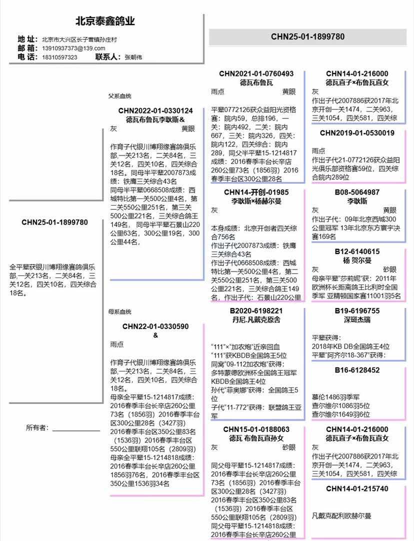 | 1656892 | 1.同父平辈张家口龙鑫公棚三关鸽王18名 | ¥500元 | 0次 |