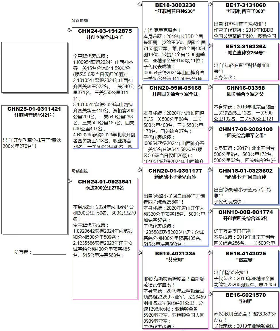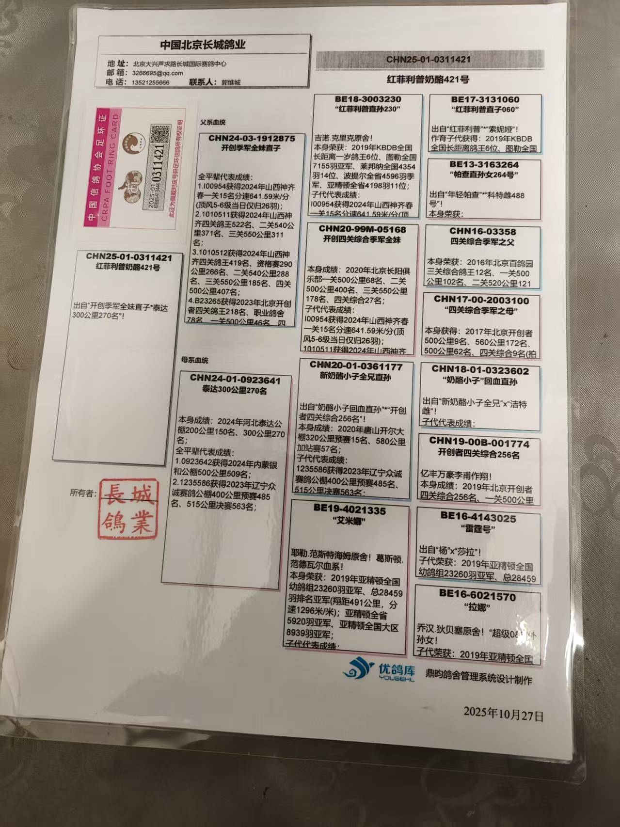 1656990 长城:开创鸽王76直子638 ¥400元 2次