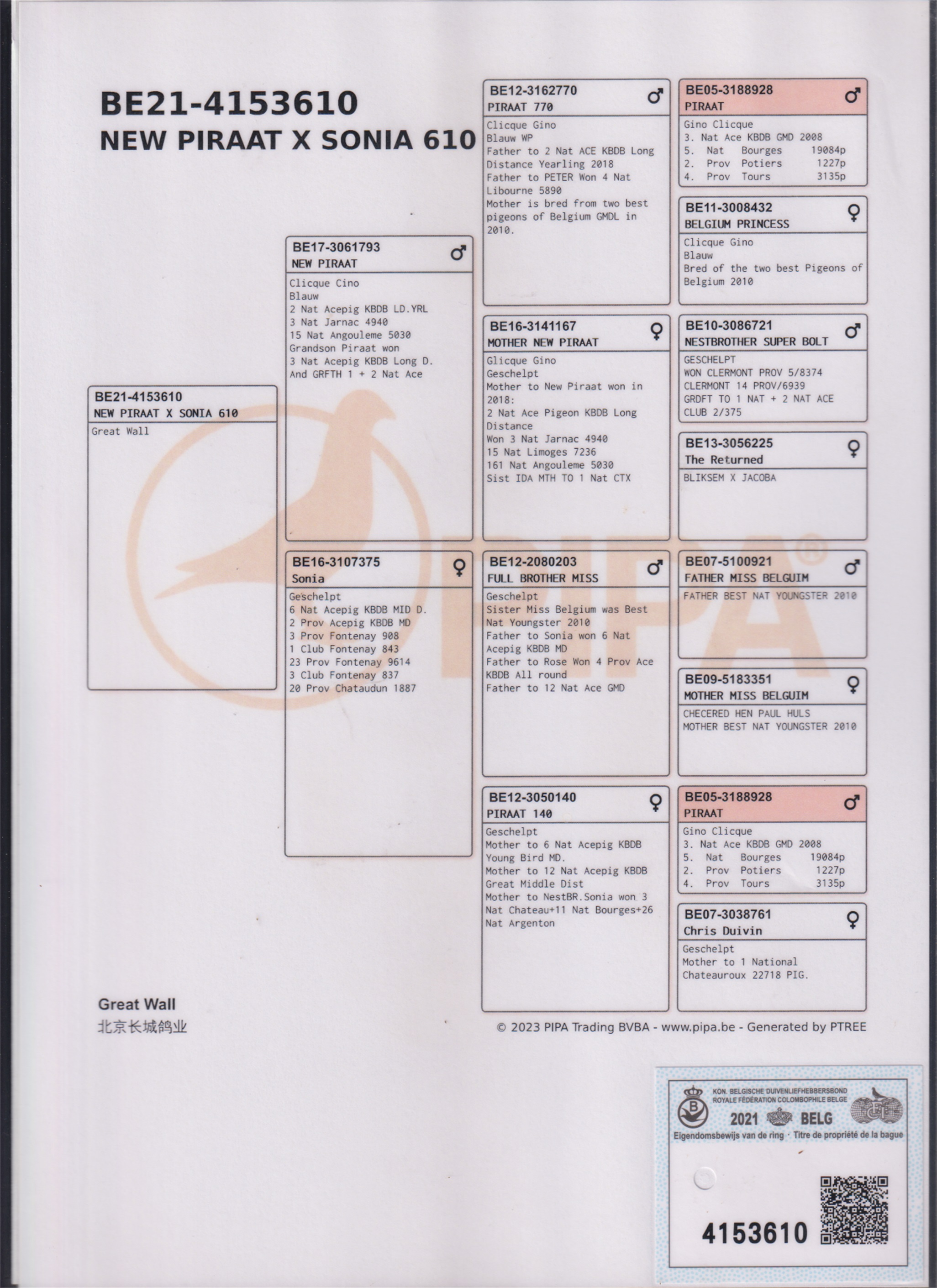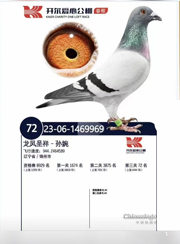 *母亲出自KBDB中距离幼鸽鸽王亚军-吉诺原舍