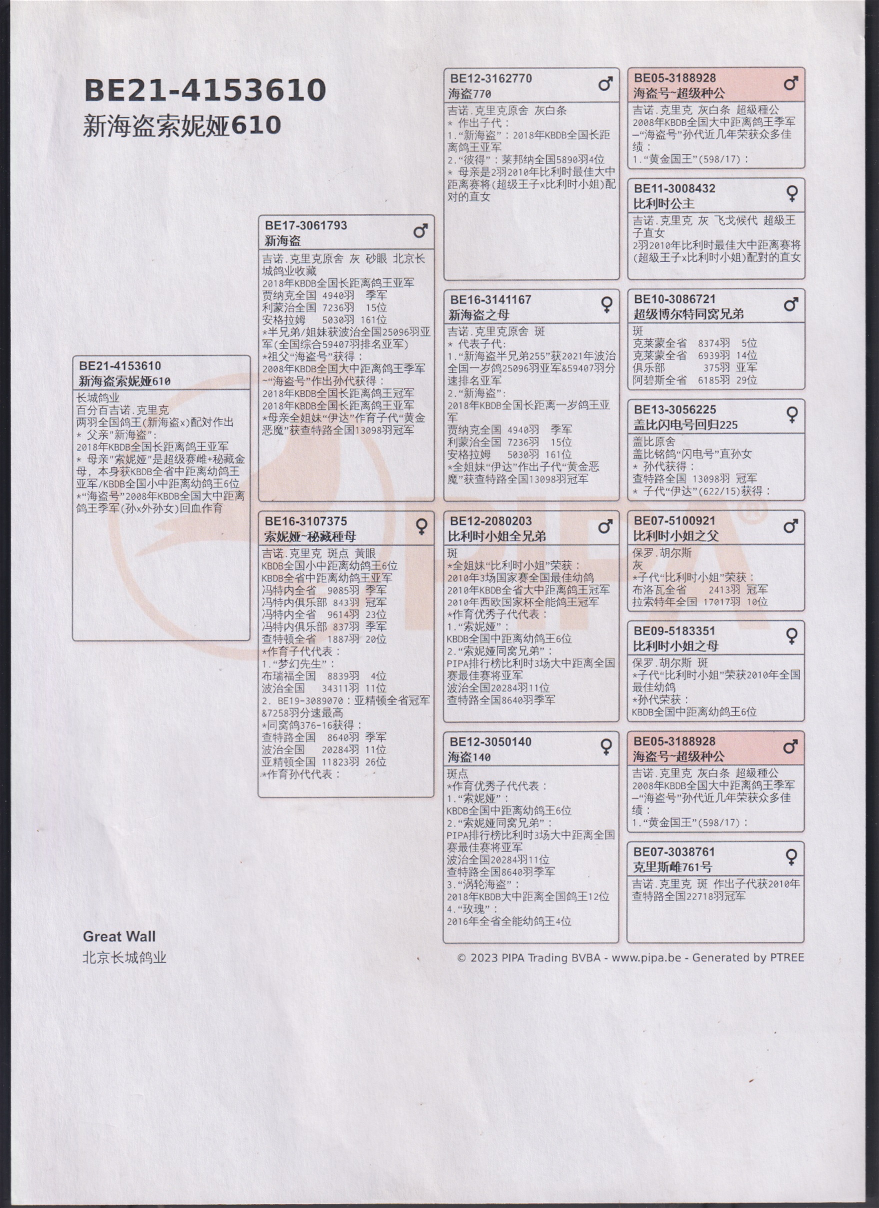 优秀孙代代表:1.“红菲利普直孙230”BE18-3003230获得:2019年KBDB全国长距离鸽王6位