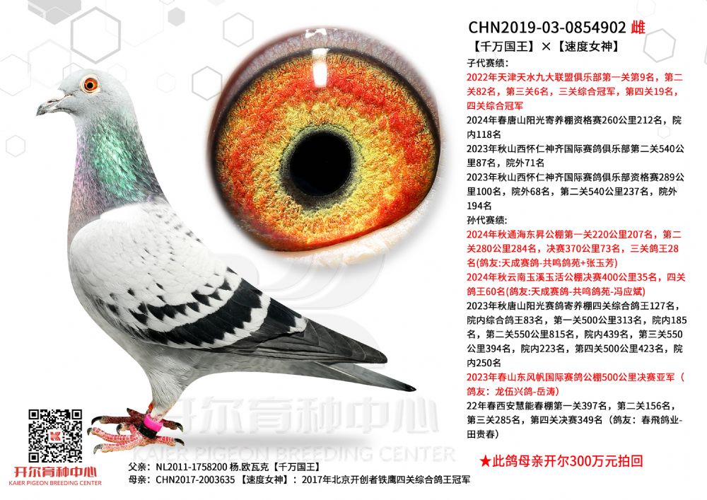| 1657120 | 掠金号×10年北京爱亚卡普鸽王亚军直女 | ¥3500元 | 2次 |