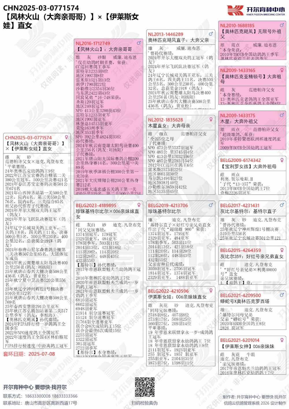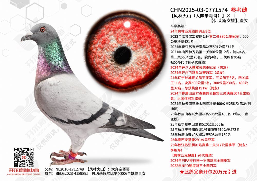| 1657120 | 掠金号×10年北京爱亚卡普鸽王亚军直女 | ¥3000元 | 1次 |