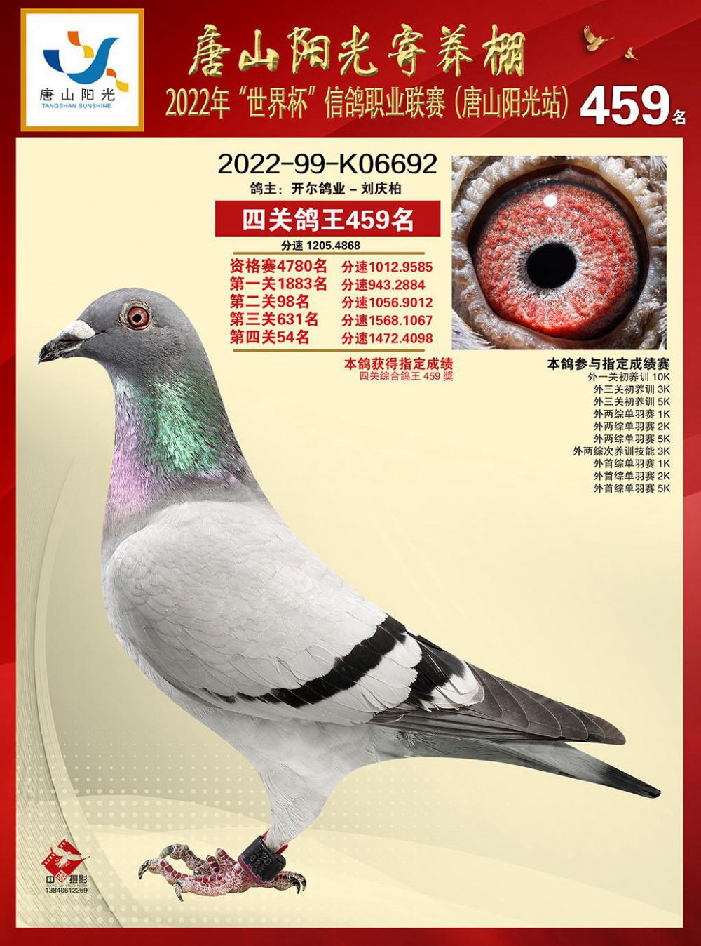 | 1657120 | 掠金号×10年北京爱亚卡普鸽王亚军直女 | ¥3000元 | 1次 |