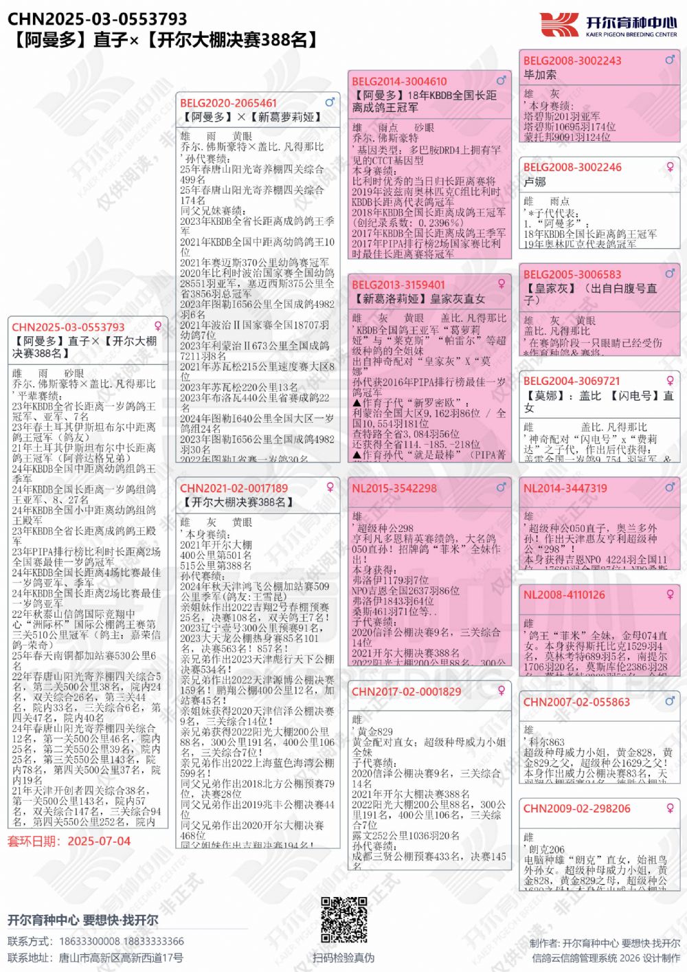 - 当前查看拍卖鸽:阿曼多直子×开尔大棚决赛388名