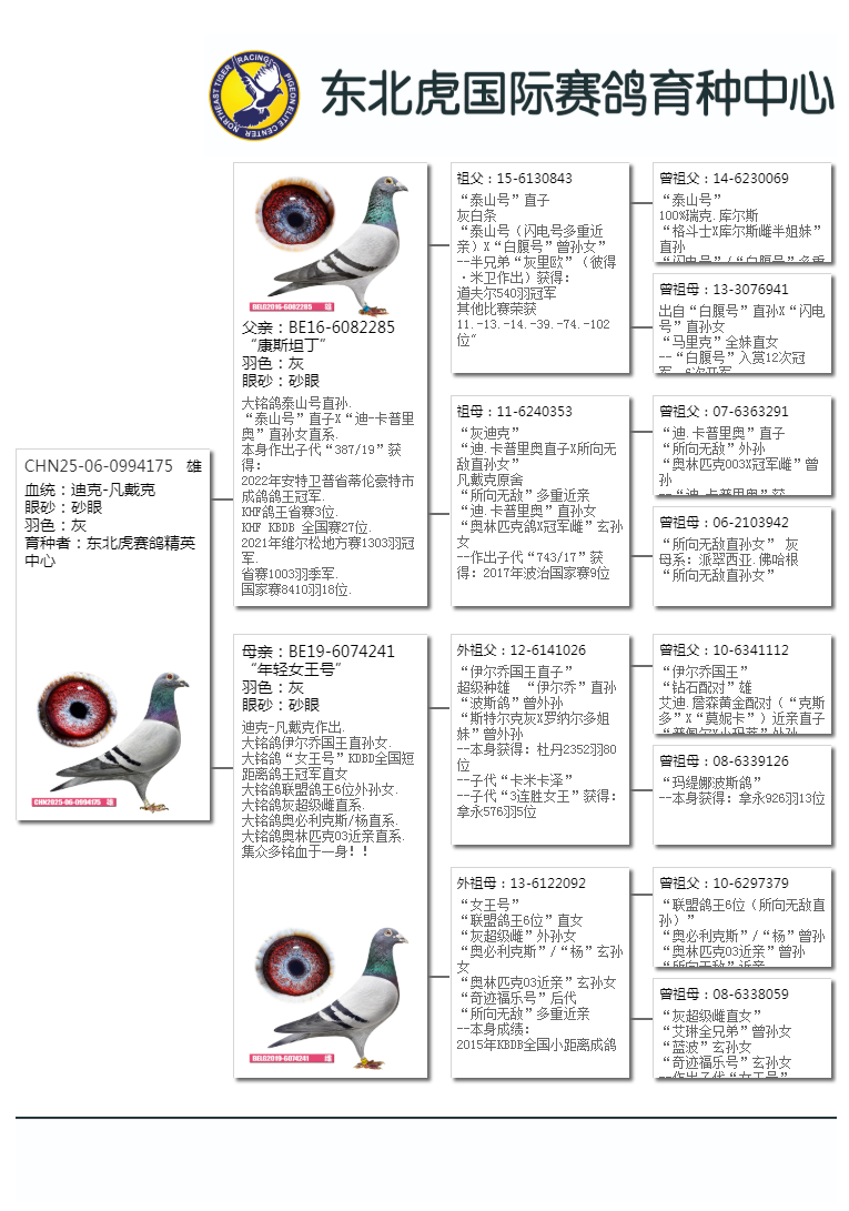 - 当前查看拍卖鸽:凡戴克-泰山先生175