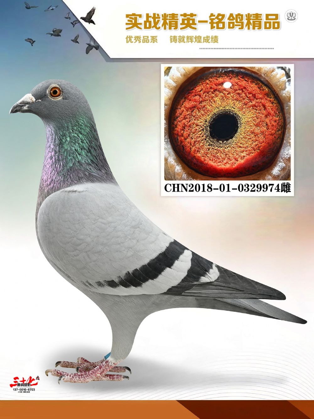此鸽脚环有点不清了。买过长城鸽业的鸽友都知道18年脚环都不清了,