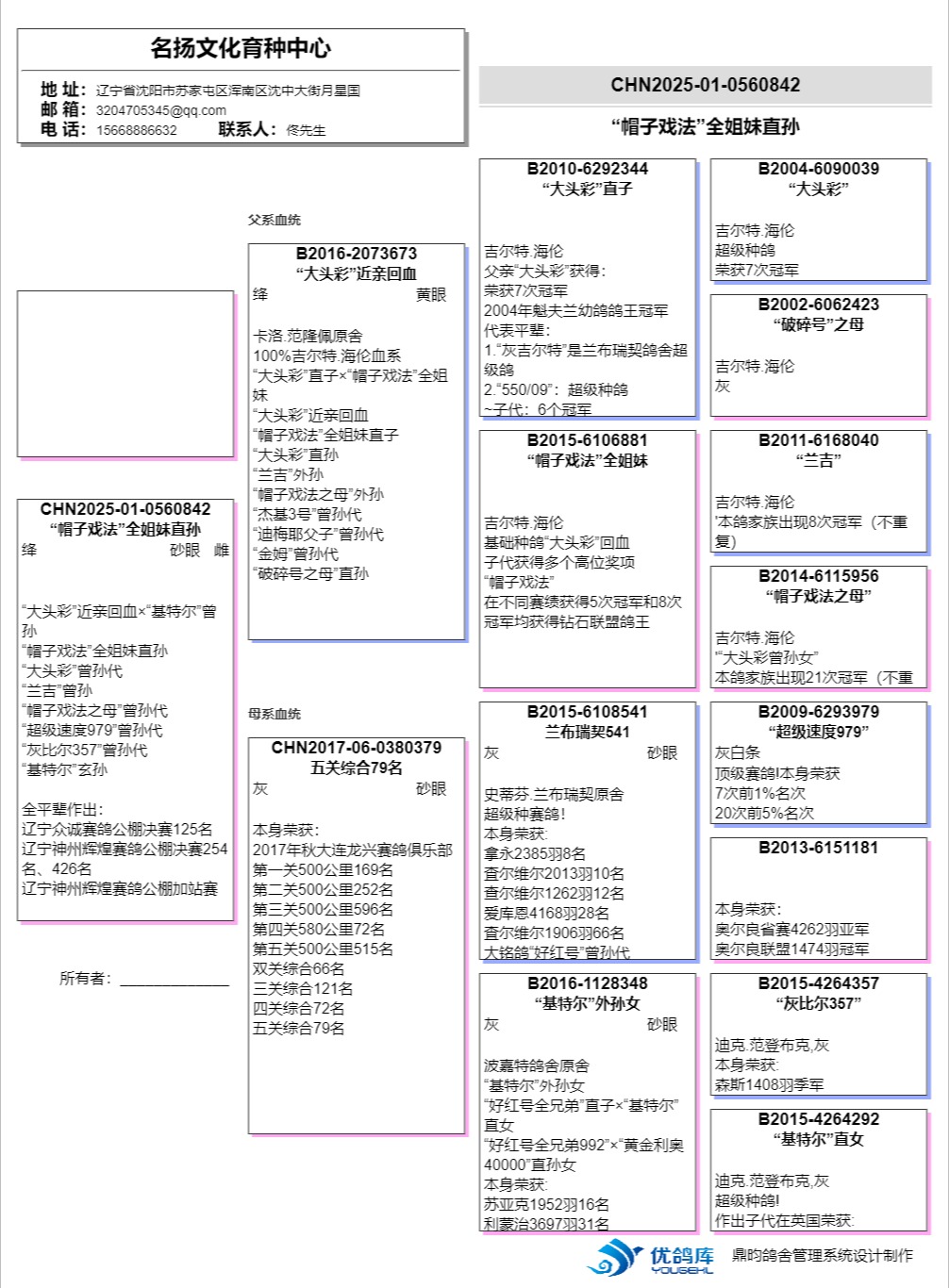 【关于血统书】所有拍卖鸽有血统书或者奖杯的本舍都以上传‘没上传就表示没有’