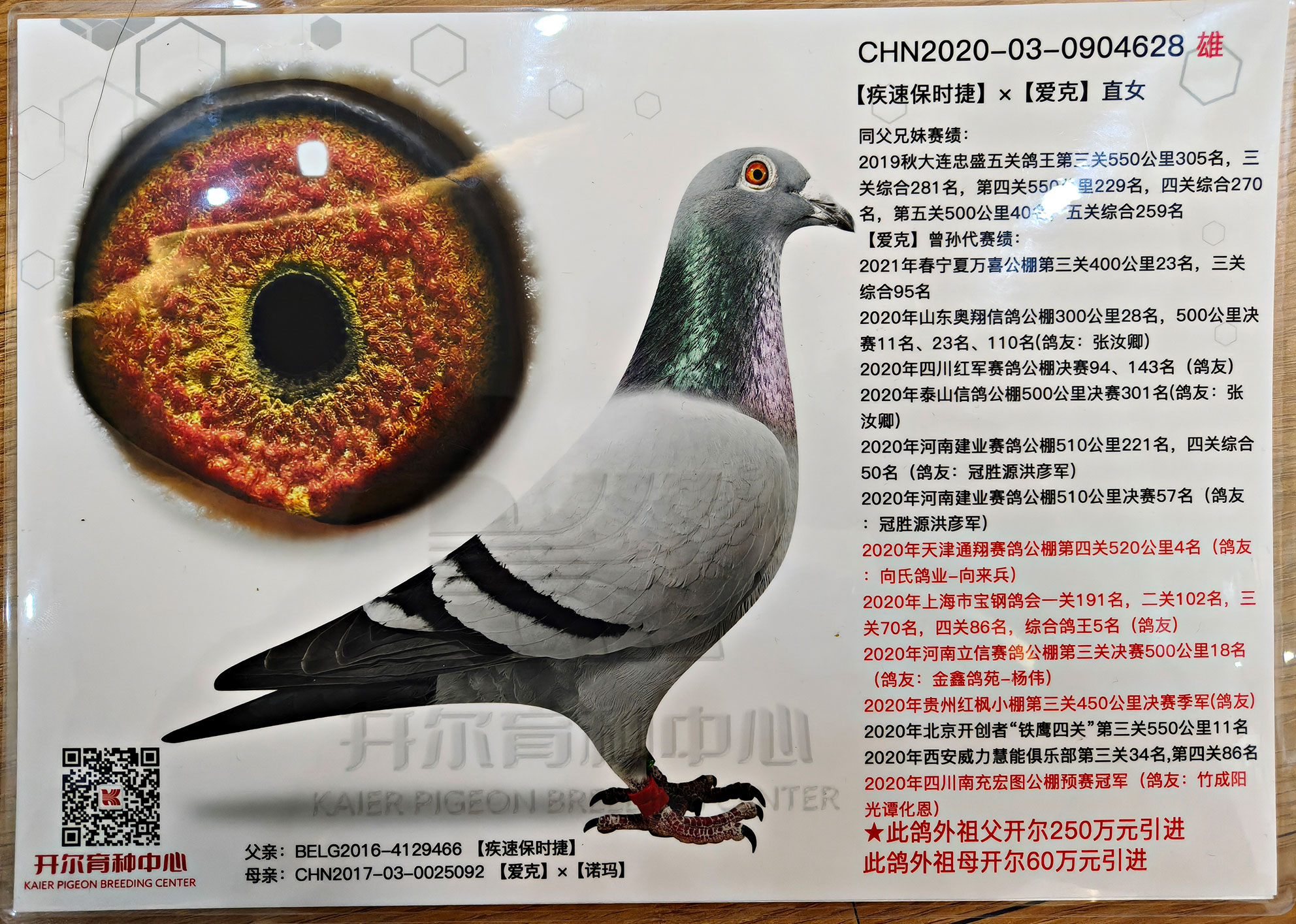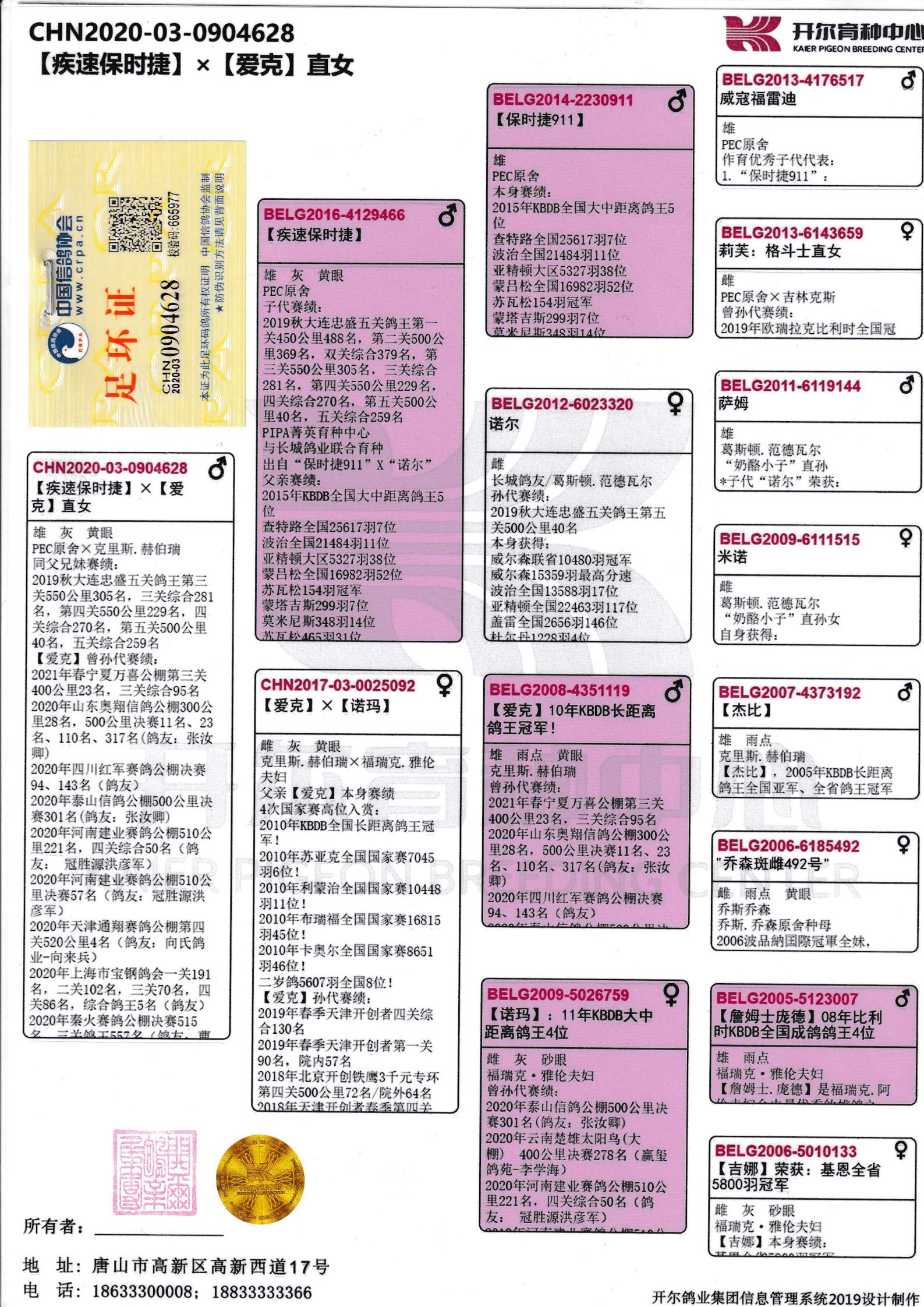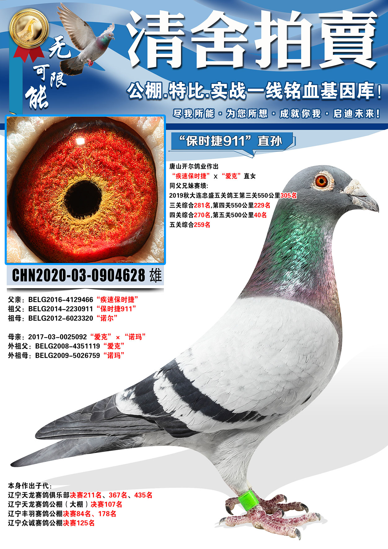 所有拍卖鸽全部血统真实!!个人鉴鸽观点不一,飞不飞天上见.血统成绩第一