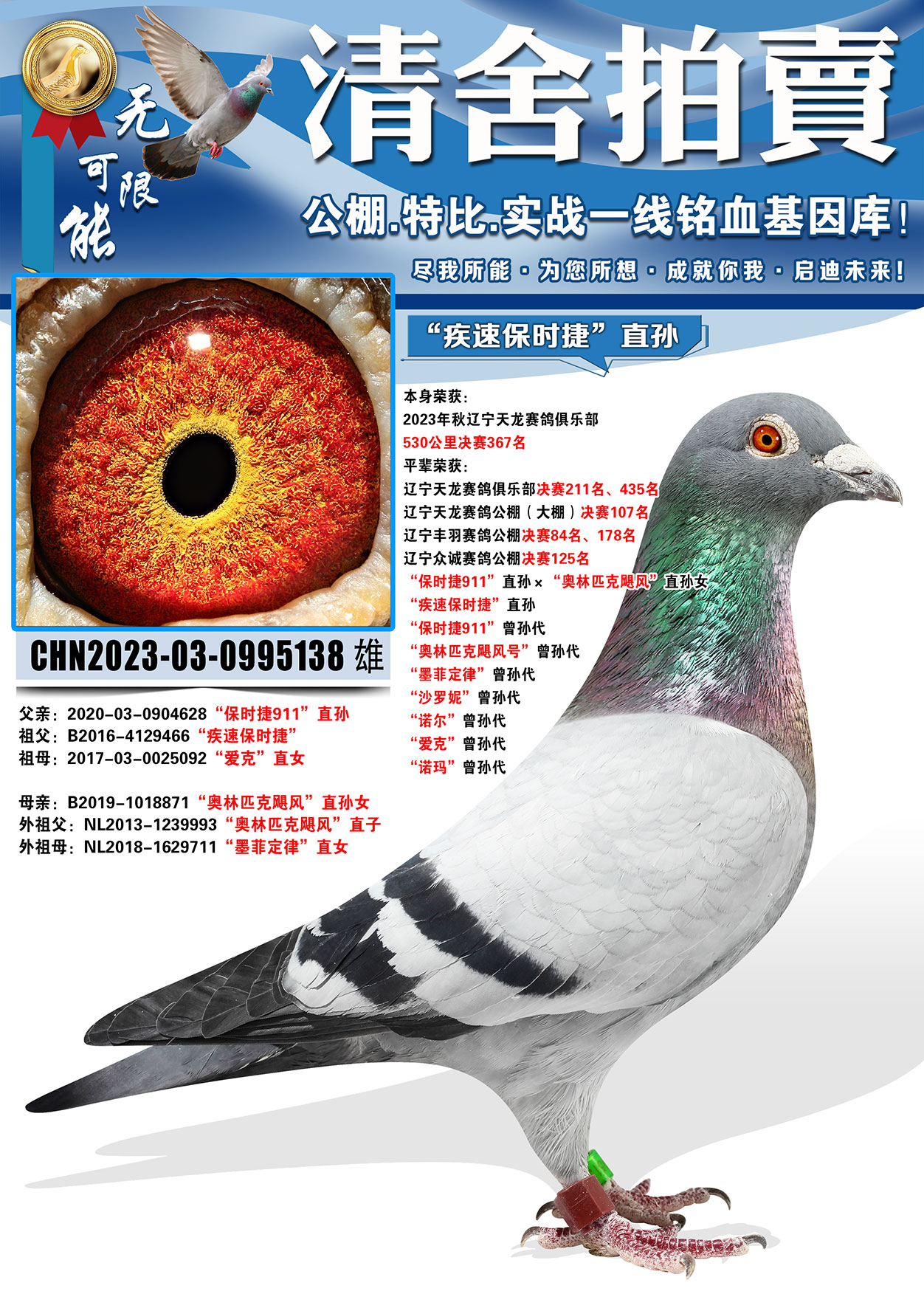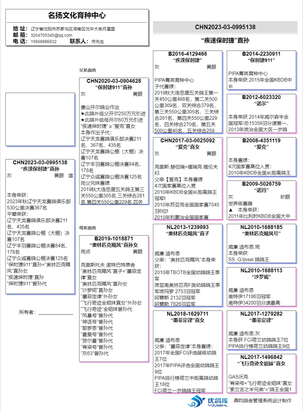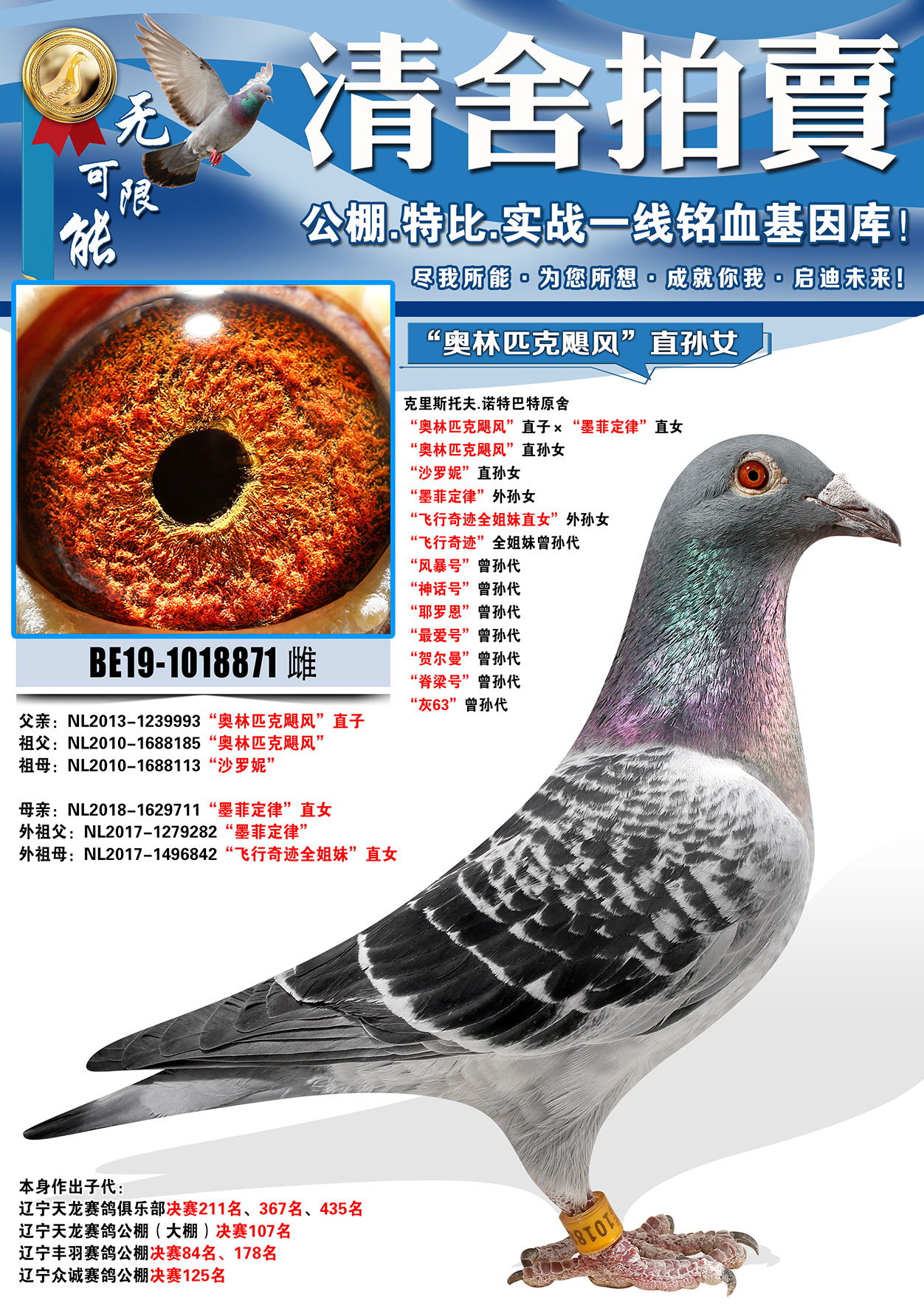 所有拍卖鸽全部血统真实!!个人鉴鸽观点不一,飞不飞天上见.血统成绩第一