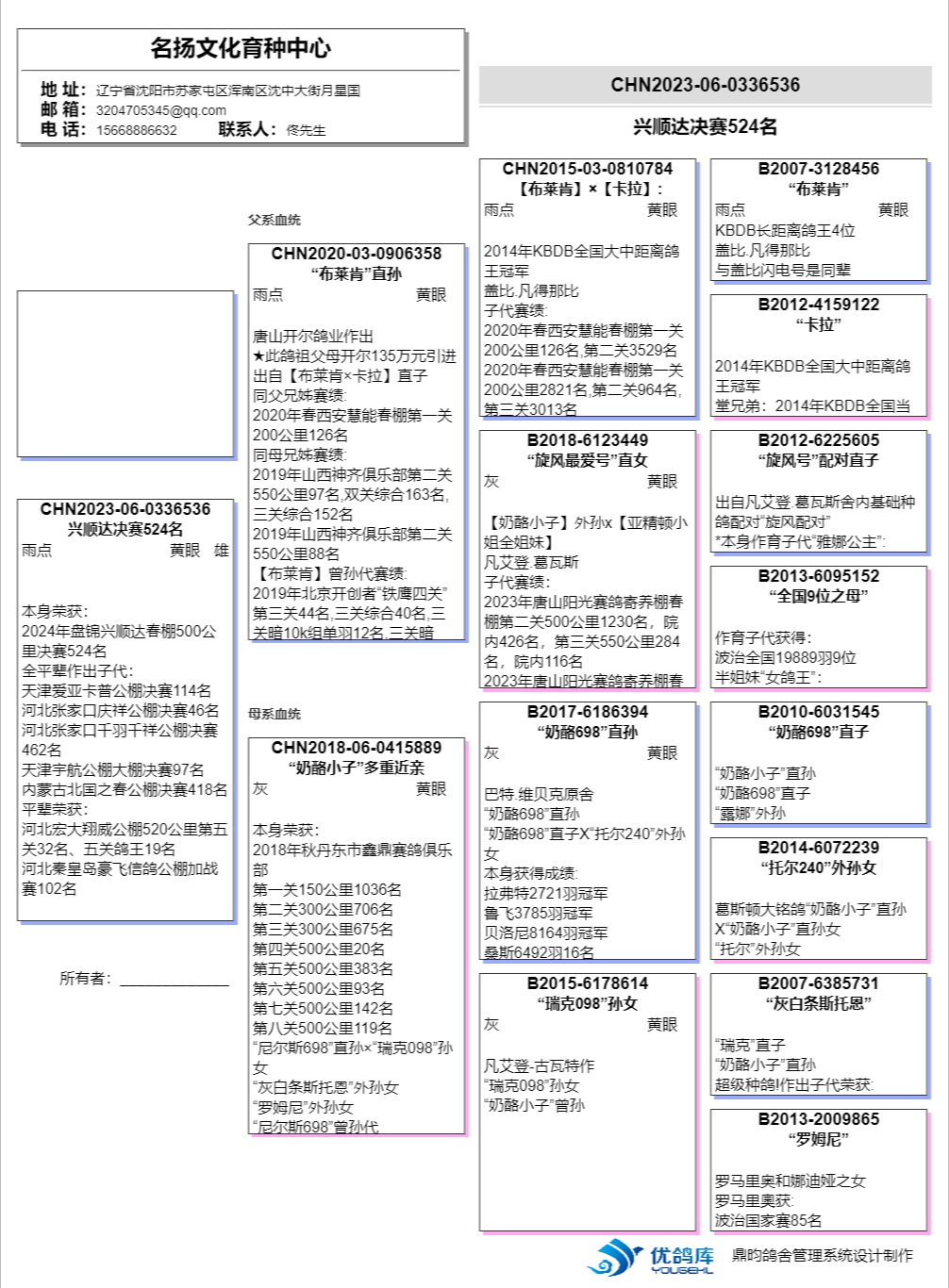 【关于血统书】所有拍卖鸽有血统书或者奖杯的本舍都以上传‘没上传就表示没有’
