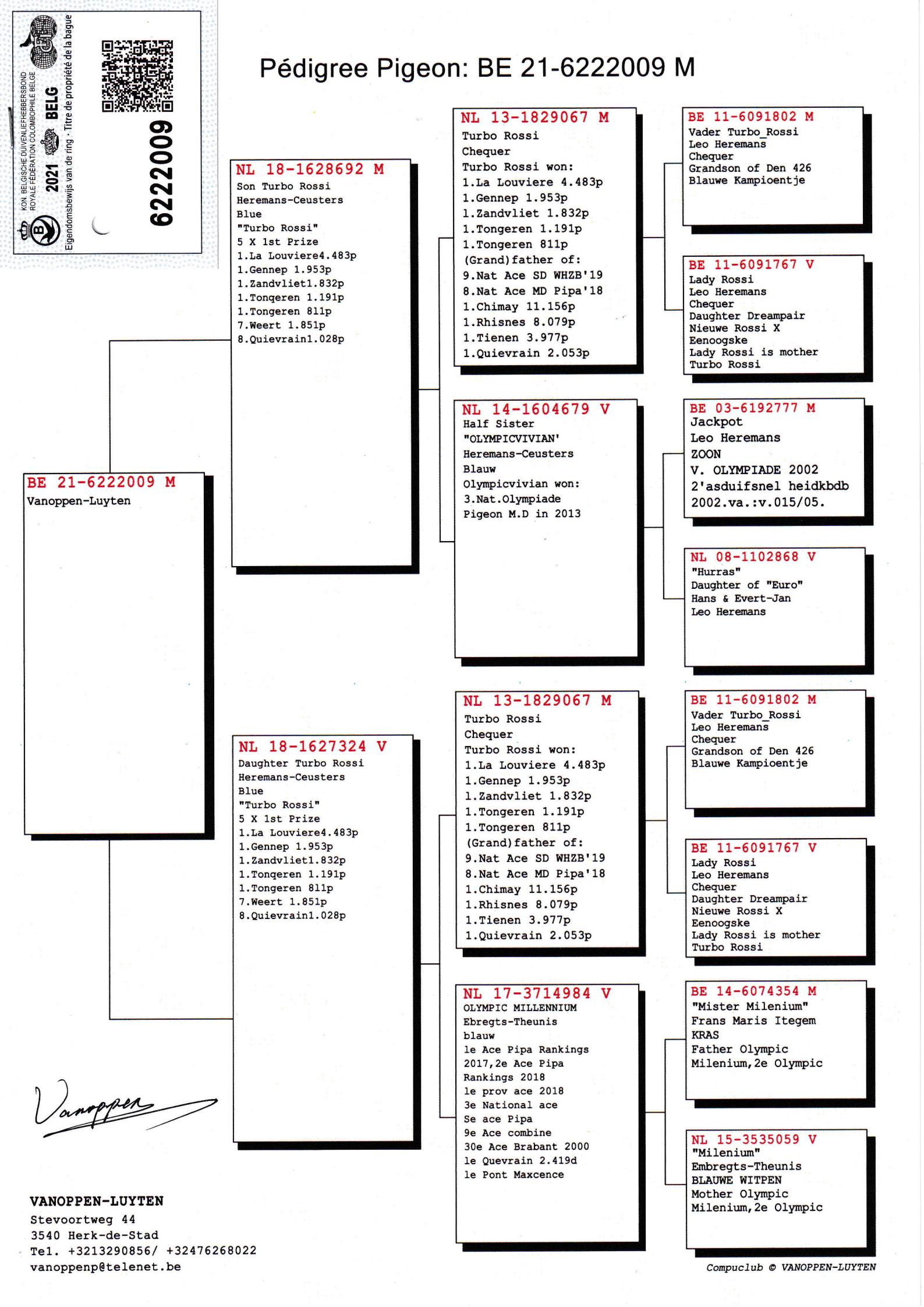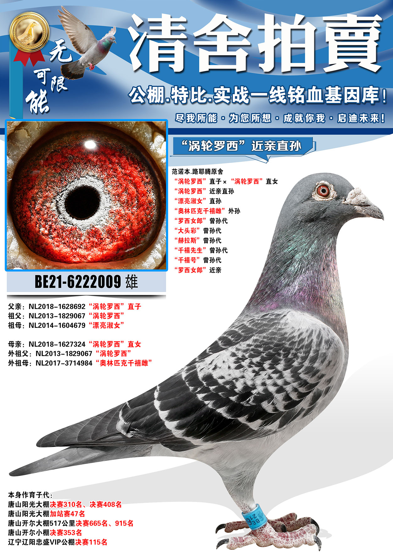 所有拍卖鸽全部血统真实!!个人鉴鸽观点不一,飞不飞天上见.血统成绩第一