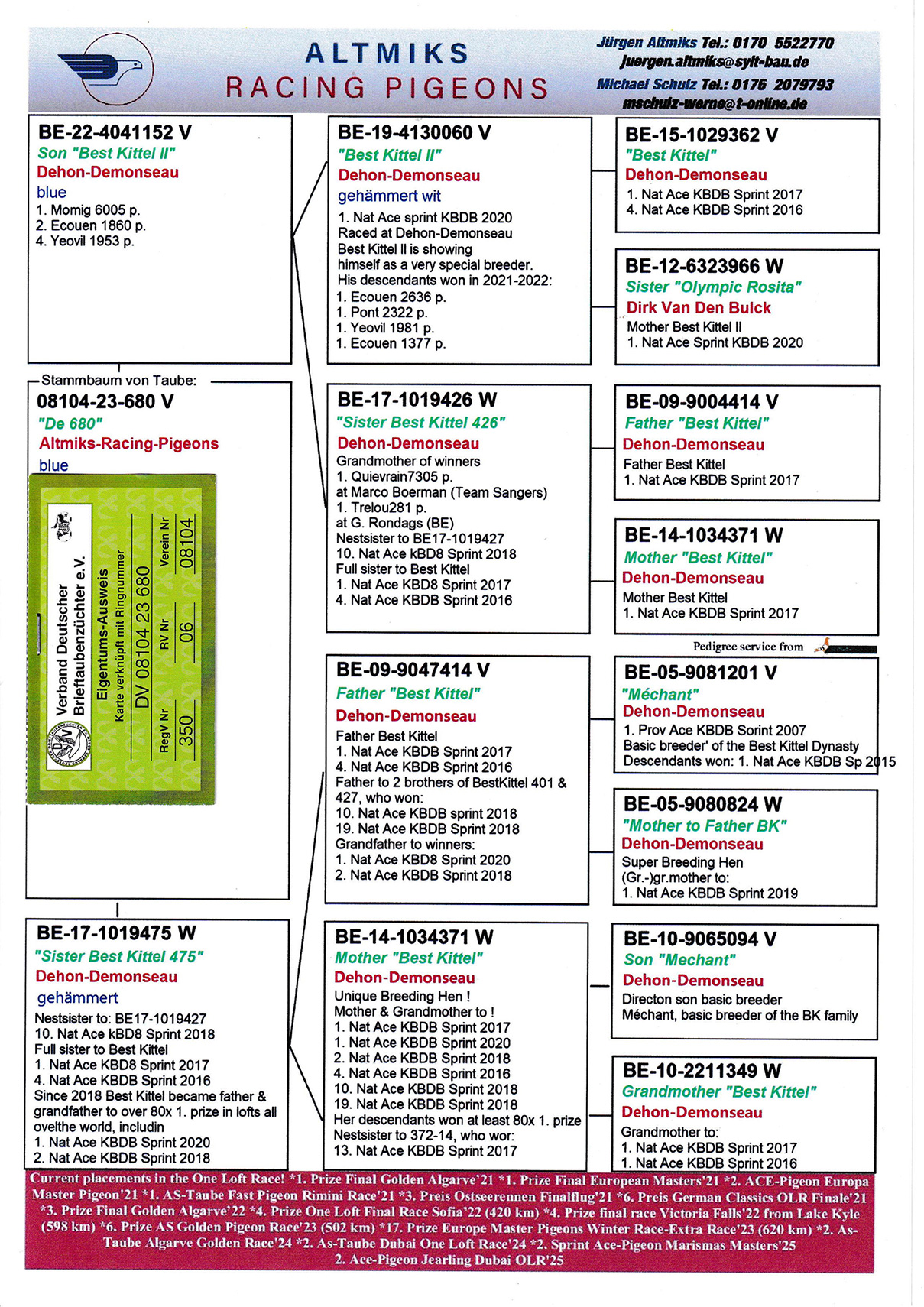 - 当前查看拍卖鸽:阿尔特米克斯赛鸽原舍 “最佳基特尔二世”