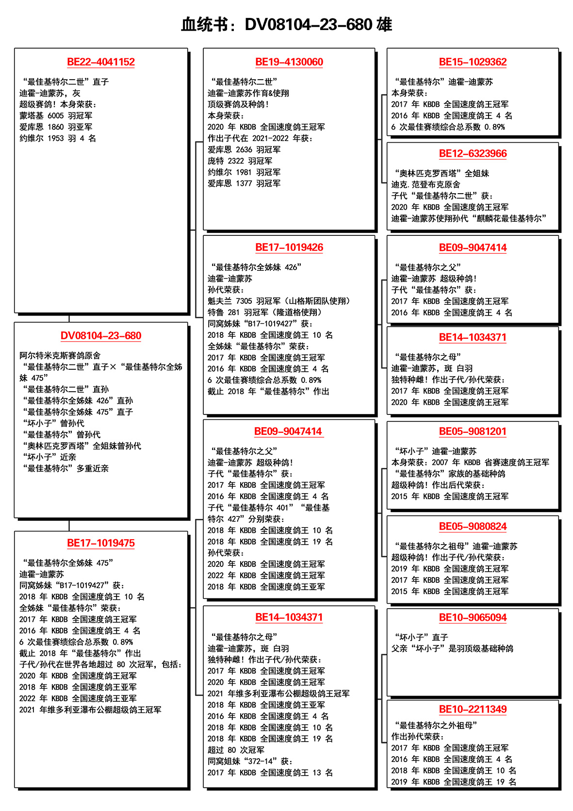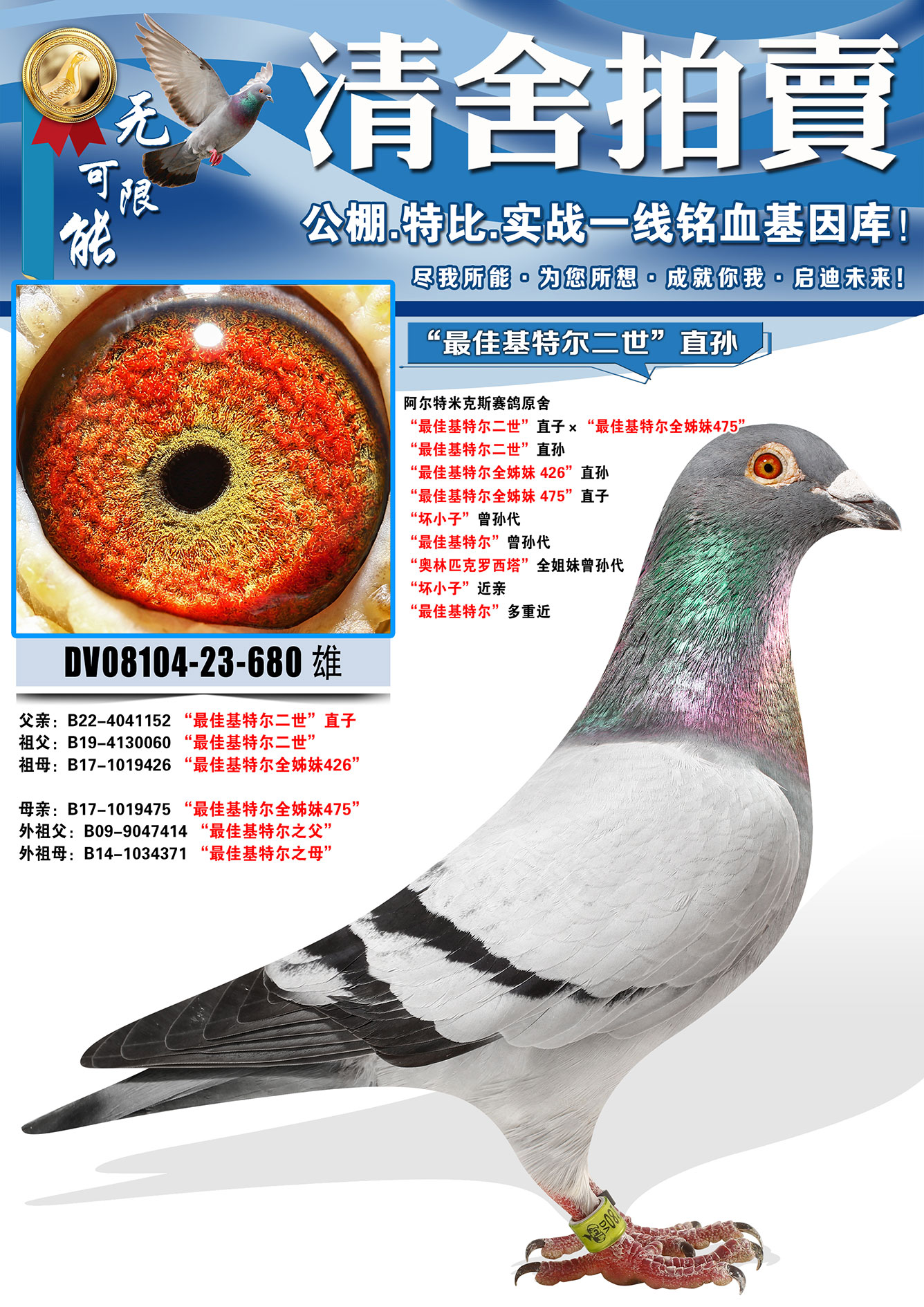所有拍卖鸽全部血统真实!!个人鉴鸽观点不一,飞不飞天上见.血统成绩第一