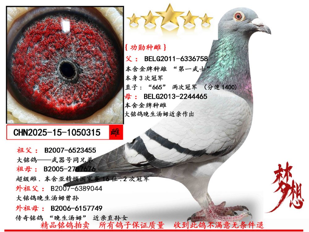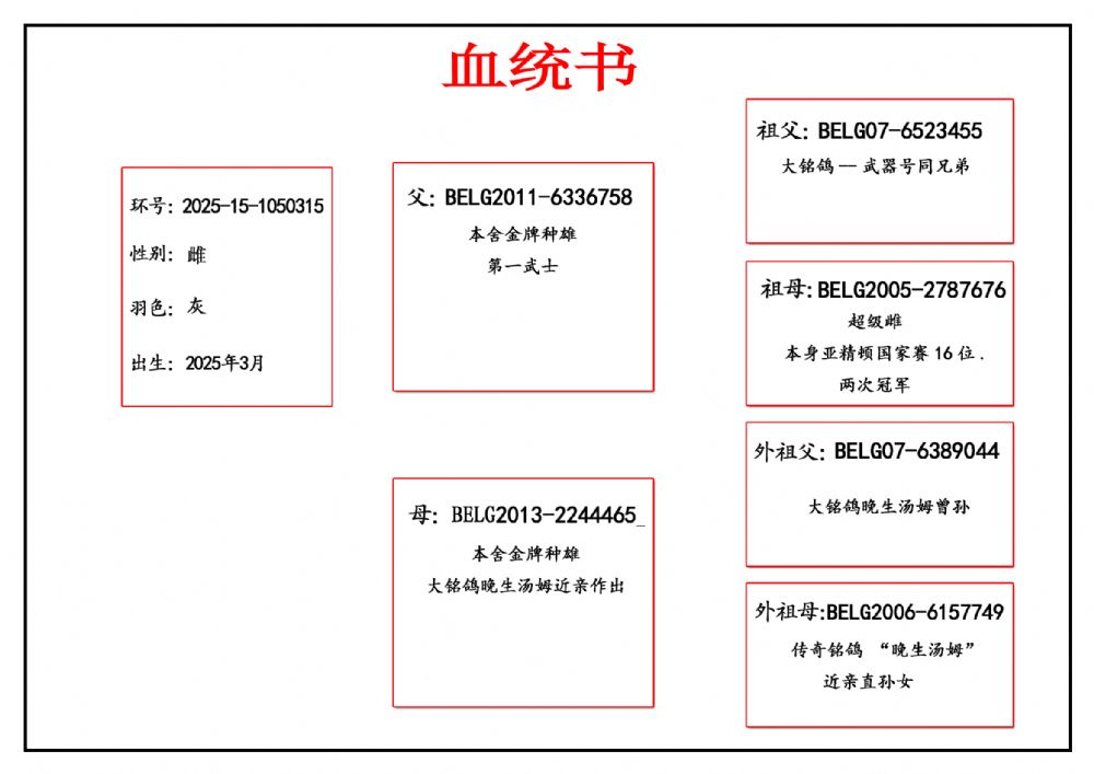 - 当前查看拍卖鸽:(推荐)桑杰士第一武士“功勋种雌”