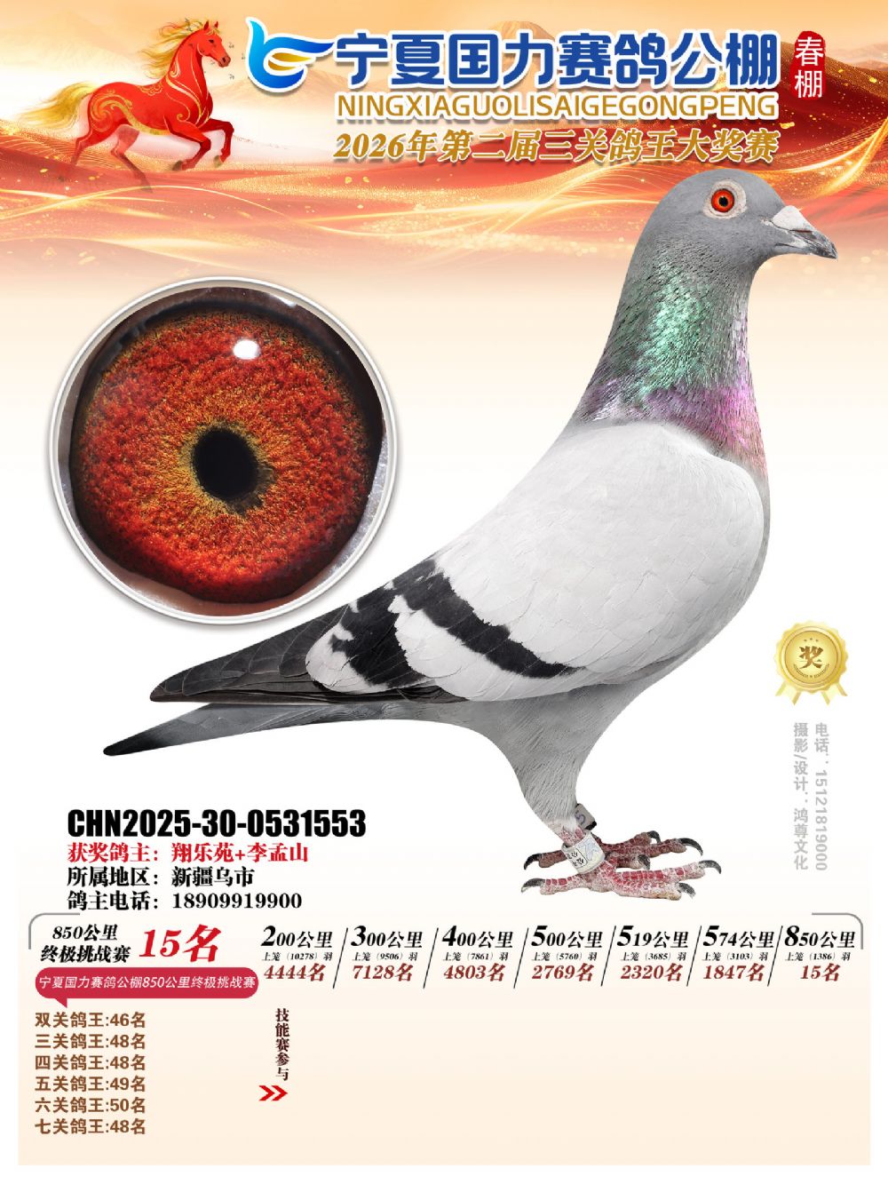 - 当前查看拍卖鸽:宁夏国力850公里终极挑战赛15名