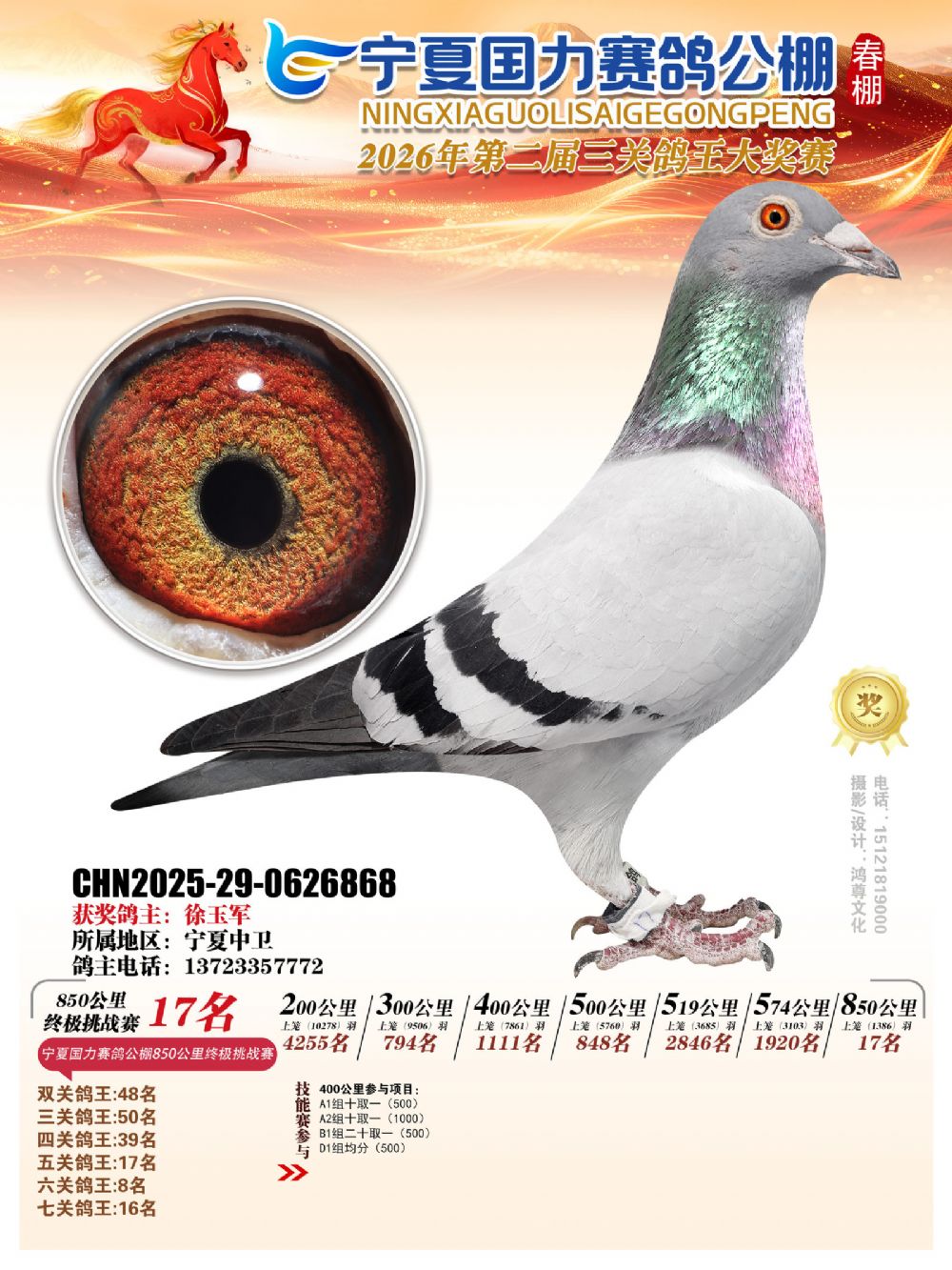 - 当前查看拍卖鸽:宁夏国力850公里终极挑战赛17名