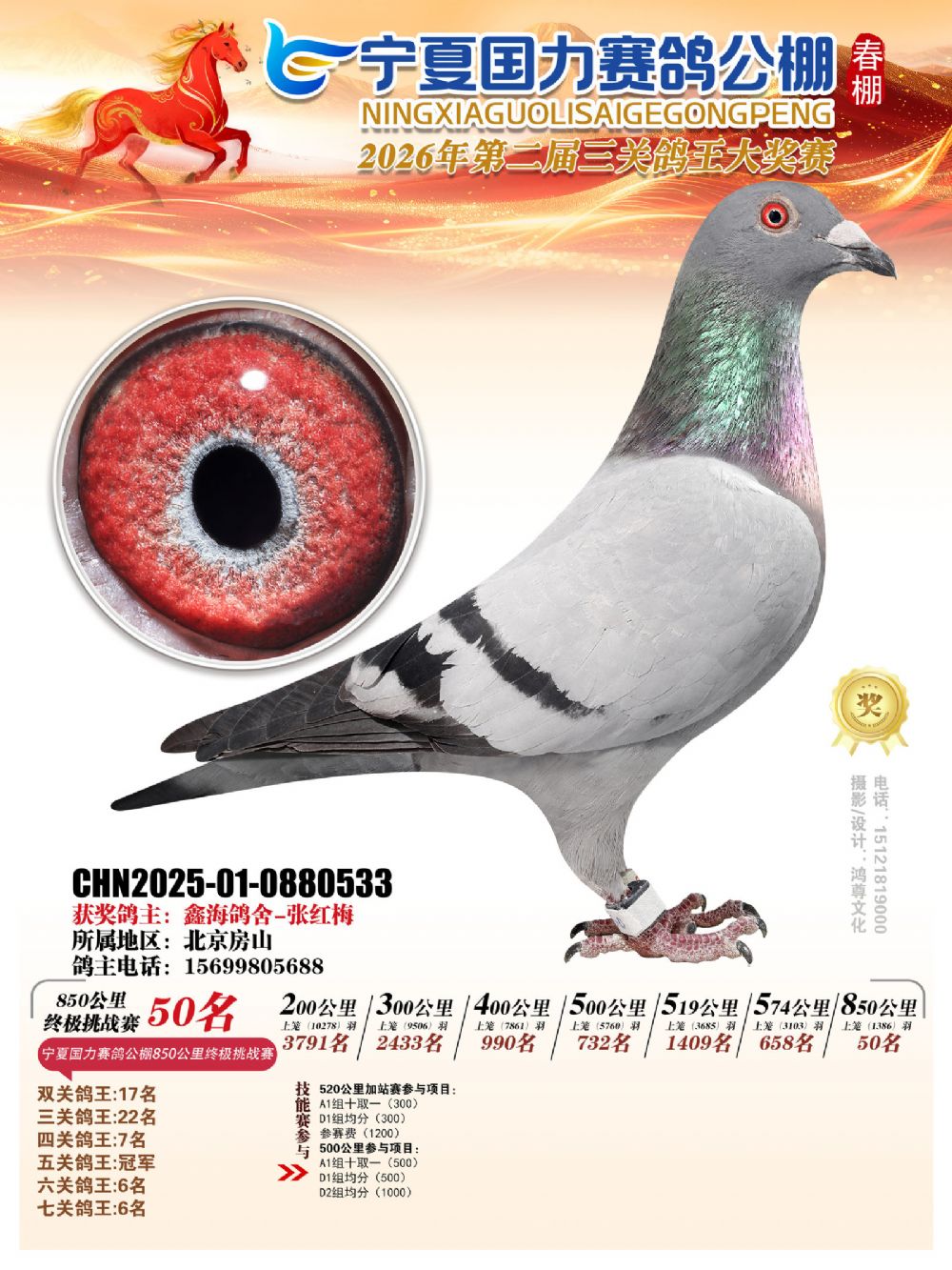 - 当前查看拍卖鸽:宁夏国力850公里终极挑战赛50名