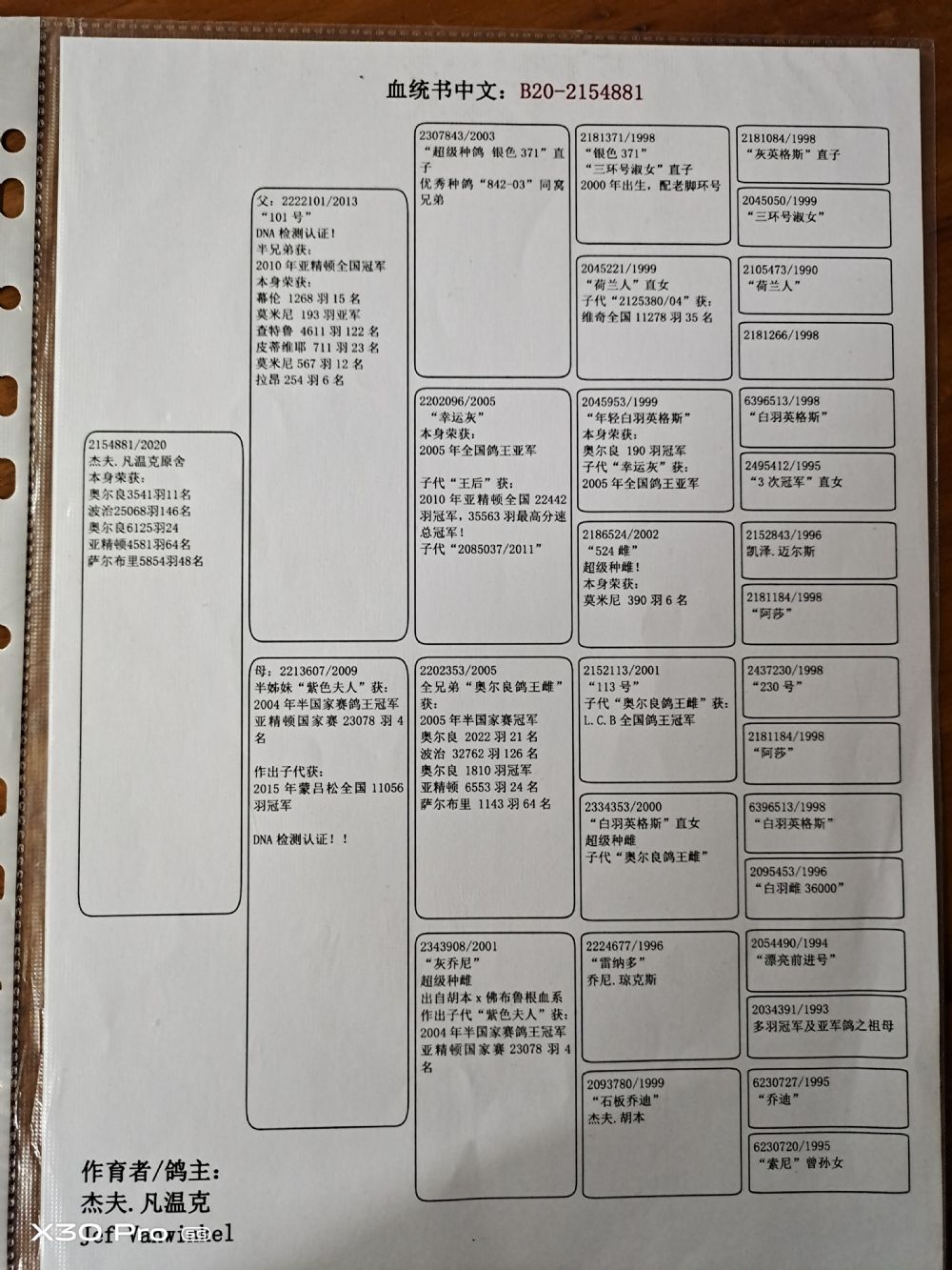 晟捷国际鸽业:鸽主养鸽30余载,引进世界铭鸽,公棚鸽王,地方赛鸽王,前名次鸽多羽。鸽舍主血:利奥贺尔曼斯,杨胡曼斯哈利,奶酪,胡本,克拉克,詹森红狐,麦克斯,51次,019,桑杰士,马克罗森斯,戈马力,速霸龙,东方不败,乔斯佛卡门,小迪迪,,甘纳斯,芬妮卡5000 晟捷国际鸽业:代表成绩:2009年获得惠翔3名,团体冠军, 2006年大鹅岛公棚预赛21名,决赛84名。 2007年盛世公棚500公里决赛182名296名425名。 2008年盛世公棚500公里决赛61名,276名。 2009年获得千山公棚决赛9名,鸽王10名.... 2011年获得祺阳牧业决赛17名37名243名,团体5名。 2014年获得丹东祺阳牧业决赛138名 2015年海逸国际公棚393名鸽王11名 2016年北戴河六艺国际公棚预赛26名,决赛51名。 蓝湖欲鸽决赛73名,精英赛冠军。 2017年大安信和公棚决赛233名300名414名。 北戴河六艺国际公棚预赛151名决赛145名 2018年春潮公棚决赛195名,376名 2019年绥中纵诚公棚500公里决赛59名 大庆臻翔公棚500公里决赛43名 海逸国际公棚四关鸽王13名 。