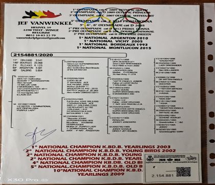 2021年燕青公棚180公里195,300公里81(指定鸽11取一,22取一,大家乐获奖)500公里425名,745名,加站赛6名(指定鸽获奖)。2021年大安信和公棚300公里254,420公里102(11取一,22取一,大家乐获奖)500公里43名(指定鸽获奖4W加手机一部)三关鸽王八位。2022年豪飞公棚双关综合鸽王亚军,大安信和公棚决赛243名,黑龙江伟路公棚457名,恒信院内五关鸽王大奖赛鸽王42位,61位,双关综合鸽王4位(获奖10W)。2023年大安信和公棚决赛194名(三关综合鸽王冠军),获奖金8W,2024年伟路公棚159名,河北唐山春兴公棚101名(3关综合鸽王季军),唐山阳光公棚501名,大安信和公棚加站赛7名,内蒙古金翔赛鸽公棚865名……1996年-2024年本舍地方赛及公棚获奖无数......