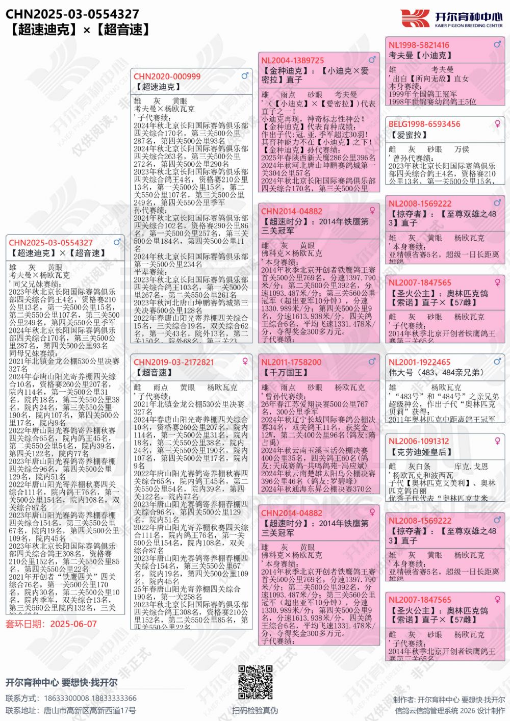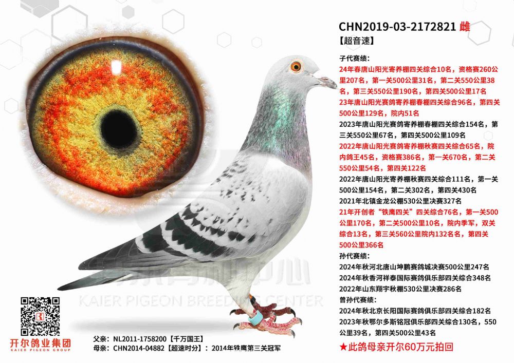 | 1657449 | 银鸽王外孙×暴雪机械战警直孙女 | ¥3000元 | 0次 |