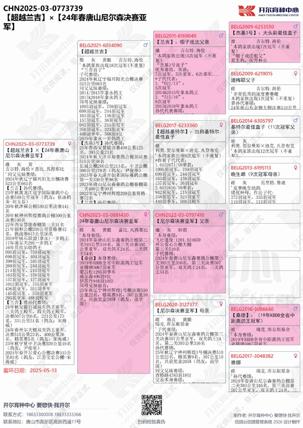 | 1657449 | 银鸽王外孙×暴雪机械战警直孙女 | ¥3000元 | 0次 |