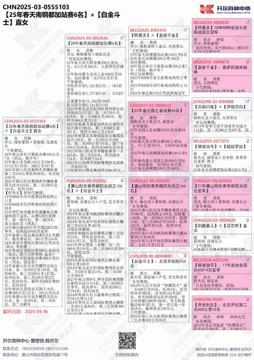 | 1657449 | 银鸽王外孙×暴雪机械战警直孙女 | ¥3000元 | 0次 |