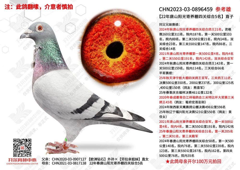 - 当前查看拍卖鸽:22年唐山阳光寄养棚四关综合5名直子