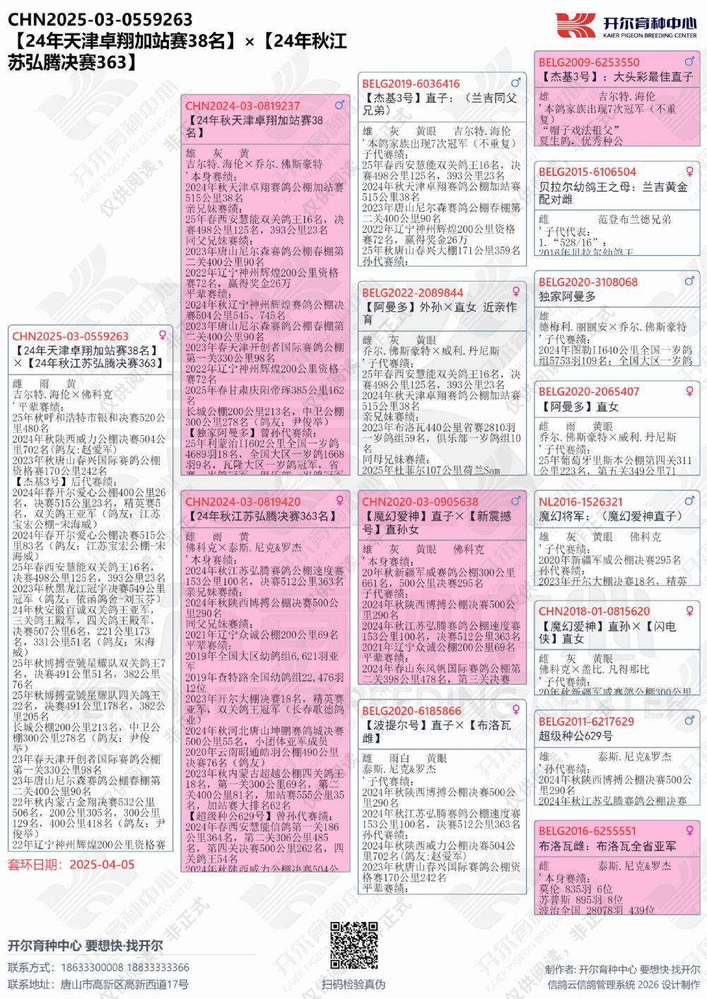| 1657449 | 银鸽王外孙×暴雪机械战警直孙女 | ¥3000元 | 0次 |
