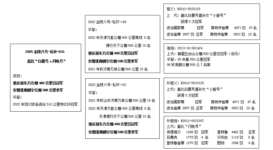 金陵八号2025年12月获山东潍坊国际公棚500公里决赛11名(拿破仑)