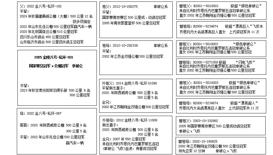 金陵八号2025年12月获山东潍坊国际公棚500公里决赛11名(拿破仑)
