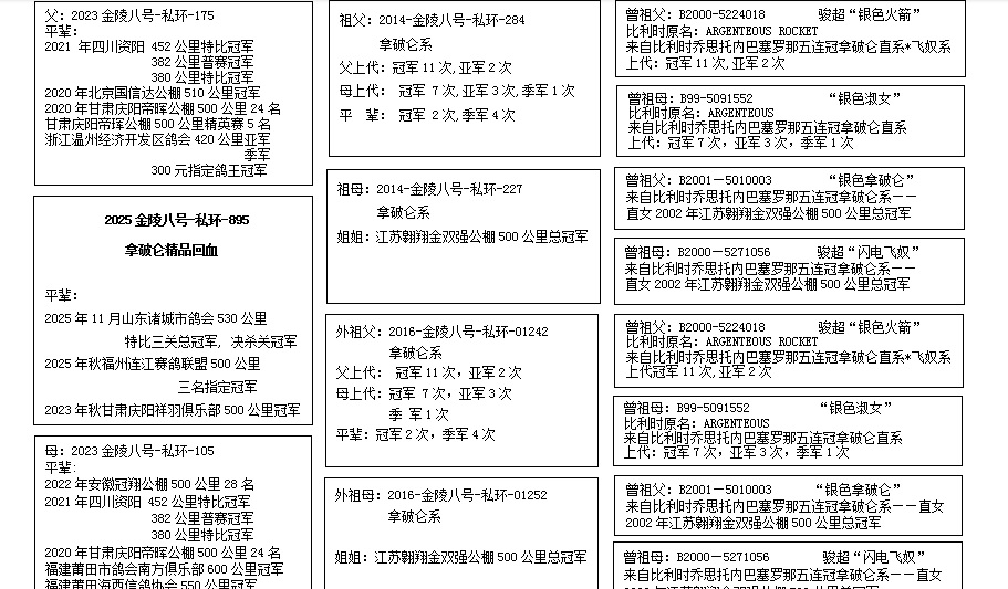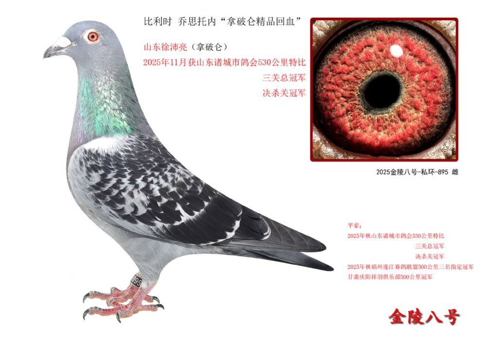 金陵八号2025年12月获山东潍坊国际公棚500公里决赛11名(拿破仑)