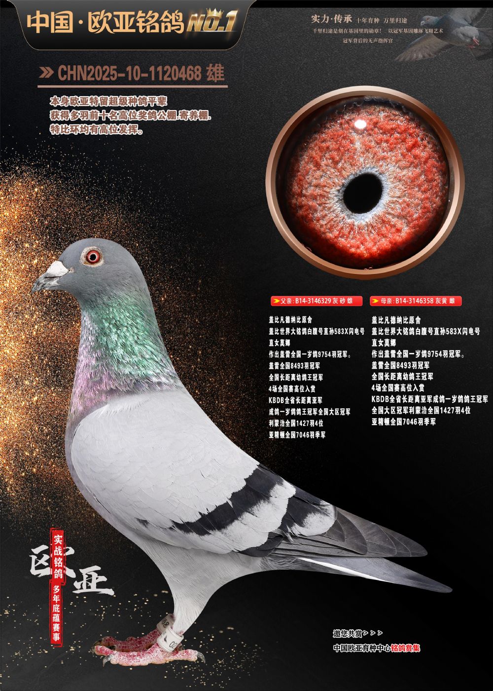 24年秋南京特比环欧亚荣获大团体冠军.小团体冠军551公里大特比13名.14名.16名.19名.20名.21名.24名.26名.27名.28名.42名.52名.54名.57名.65名.66名.68名.70名.71名.72名.74名.76名.80名.82名.83名.84名.85名.86名.90名.92名.110名.116名.121名.122名.128名.131名.158名.161名.164名.165名.166名.172名.174名.177名.182名.195名.196名.201名.205名.208名.210名.216名.253名.269名.275名.276名.294名.296名.299名,,24年秋云南天南铜都公棚决赛415名.天南铜都小棚决赛409名.云南玉活公棚决赛102名.490名.团体32名上笼二羽进二羽,天南铜都大棚506公里决赛445名。热烈祝贺河北省巨鹿县李兰生老师用欧亚泰山号血系连续十一年夺冠军,河北省国家赛冠军.全国季军等多次前十名高位,扬州王军王总用欧亚利奥24年春季获山东翔宇公棚决赛33名盖比53名。南京刘正龙刘总用欧亚盖比获得24年秋山东潍坊国际公棚决赛42名.精英赛30名.三关鸽王71名.决赛86名.加站赛16名.南京市特比环A组鸽王9名.B组鸽王5名.6名.C组鸽王5名.精英赛冠军4名.技能赛A组冠军4名.5名.秦淮区特比环荣获15名.46名.48名.87名。四川西昌徐亮徐总用欧亚利奥获得凉山州聚友决赛177名.第二关亚军双关鸽王19名.三关鸽王105名.云南豪庭公棚决赛603名。热烈祝贺24年四川重庆翔园鸽舍用欧亚泰山号荣获春季400公里冠军.秋季500公里冠军,河北王总用詹森X利奥获得千羽千翔公棚400公里冠军,广东蔡楷焕荣获24年秋爱好者 赛鸽俱乐部三关鸽王季军.一关420公里99名.二关450公里11名.三关520公里32名.单关季军.7名.12名,江西李卫兴荣获贵州红枫公棚8名.共翔俱乐部寄养棚四关综合鸽王30名.一关400公里78名.二关500公里55名.三关520公里37名.四关500公里57名.同父母获公棚18名.雷鸣获得武汉黄浦育翔中心冠军,四川陈文获得四川明鸿俱乐部300公里梦幻2名.3名.4名.9名.10名.13名.14名.15名.31名.34名.40名.41名.42名.43名.69名.71名.72名.73名.74名.94名.95名.97名.98名.99名.419公里决赛荣获总冠军7名.总共归巢9羽,四川徐亮获豪庭决赛603名,山西郑勇获得山西泰鑫公棚决赛255名詹森红狐,热烈祝贺马总获得开尔(飞跃队)决赛9名获奖金1310000万元.第一关52名,天津津福资赛180公里96名.获奖金429543万元,欧亚支持全国鸽友24年秋多人报喜 祝大家取得更好成绩,给欧亚报喜鸽友欧亚决定给每人赠送一羽超级种鸽。欧亚俱乐部特比环多关鸽王成绩:15年秋淮安特比环黑色星期一全会上笼9700多羽,当天无鸽归巢,第二天全会归巢357羽,本舍归巢158羽.前十名八羽.前一百名归巢57羽,16年春季获五关鸽王总冠军,总亚军四名.六名.七名.九名.十名.晶艺俱乐部520公里冠亚季军5名.6名.7名.9名.11名等,火车头冠军.季军6名.8名.9名.10名,16年秋晶艺俱乐部特比环520公里亚军.季军4名.6名.7名.9名,15年春南京白下特比环冠军.亚军.季军6名.7名.8名.9名.10名.指定鸽A B组获得冠军.亚军.季军4名.5名.,17年淮安特比环亚军.4名.5名.7名.8名.10名.六关鸽王总冠军.4名.6名.9名.10名,寄养棚宿迁刘总20羽特比环获冠军.季军.4名.7名.8名.9名等。18年荣获万羽特比环六关鸽王总冠军.总亚军.总季军.6名.8名.十名.单关四羽冠军.二羽亚军.四羽季军.前十名27羽。19年秋万羽特比环六关鸽王总亚军.总季军.5名.8名等,单关二羽冠军.三羽亚军.一羽季军前十名31羽。20年秋淮安市鸽会四关特比环大赛风雨无阻鸽王亚军.鸽王六名,金品俱乐部万羽特比环六关鸽王总冠军,总亚军.四名.五名.六名.七名.八名.十名.前二百名鸽王35羽,单关冠亚季军前十名四十多羽,火车头五关鸽王季军.六名.八名.前二百名鸽王十七羽。20年春荣获淮安五区一市四关鸽王总冠军.亚军.四名.八名.九名。21年秋荣获金品万羽特比环大赛六关鸽王总亚军.总季军.四名.七名.九名.十名.单关冠亚军季军前十名三十多羽。火车头协会鸽王六名.七名.十名.单关前十名十七羽。22年秋荣获鸽王总冠军.总亚军.5名.7名.8名.9名.11名.单关冠亚季军前十名三十多羽,第一关单关前二百名四十多羽,第二关前二百名三十多羽,第三关前二百名四十多羽,第四关前二百名四十多羽,第五关前一百名53羽。23年秋荣获鸽王季军.五名.八名.十名.13名.17名.20名.27名等多羽鸽王.单关前十名二十多羽。公棚.寄养棚部分成绩:16年秋宁夏黄河公棚总冠军电脑戈马力指定通炮冠军,17年送八羽参赛获得鸽王八名进奖四名,支持韩总荣获八名。支持鸽友荣获宁夏中卫公棚决赛总冠军.精英赛冠军,支持18年宁夏黄河公棚决赛冠军詹森X泰山。安徽鼎博寄养棚院内外四关鸽王总冠军.鸽王十七名.三十七名同窝,鸽王39名.42名.58名.67名。18年山东公棚预赛冠军.决赛65名.送八羽进奖五羽.指定获奔驰汽车一辆。支持鸽友获得云南蓝云公棚冠军.盖比X佛卡门。支持鸽友荣获云南银集公棚决赛冠军 詹森427X520血系 速度赛6700羽冠军。17年荣获金马俱乐部寄养棚四关鸽王总冠军.季军.六名.八名.第一关冠军.亚军.季军四名.七名.十一名.金牌教练奖。支持鸽友18年北京费翔公棚预赛九名电脑X桑杰士,支持鸽友荣获陕西威力公棚决赛11名.内蒙古临河寄养棚四关鸽王六名.詹森配泰山,支持河北王总用欧亚詹森427配胡本喜获20年秋开尔青年棚季军。云南东荣公棚16年预赛冠军.决赛77名.17年决赛12名.詹森红狐X泰山,17年平安公棚决赛4名 詹森427。欧亚获得21年金母寄养棚第一关四名.第二关5名.第三关5名.6名.7名.10名.三关鸽王总冠军,四关鸽王14名.十羽鸽王。支持河
