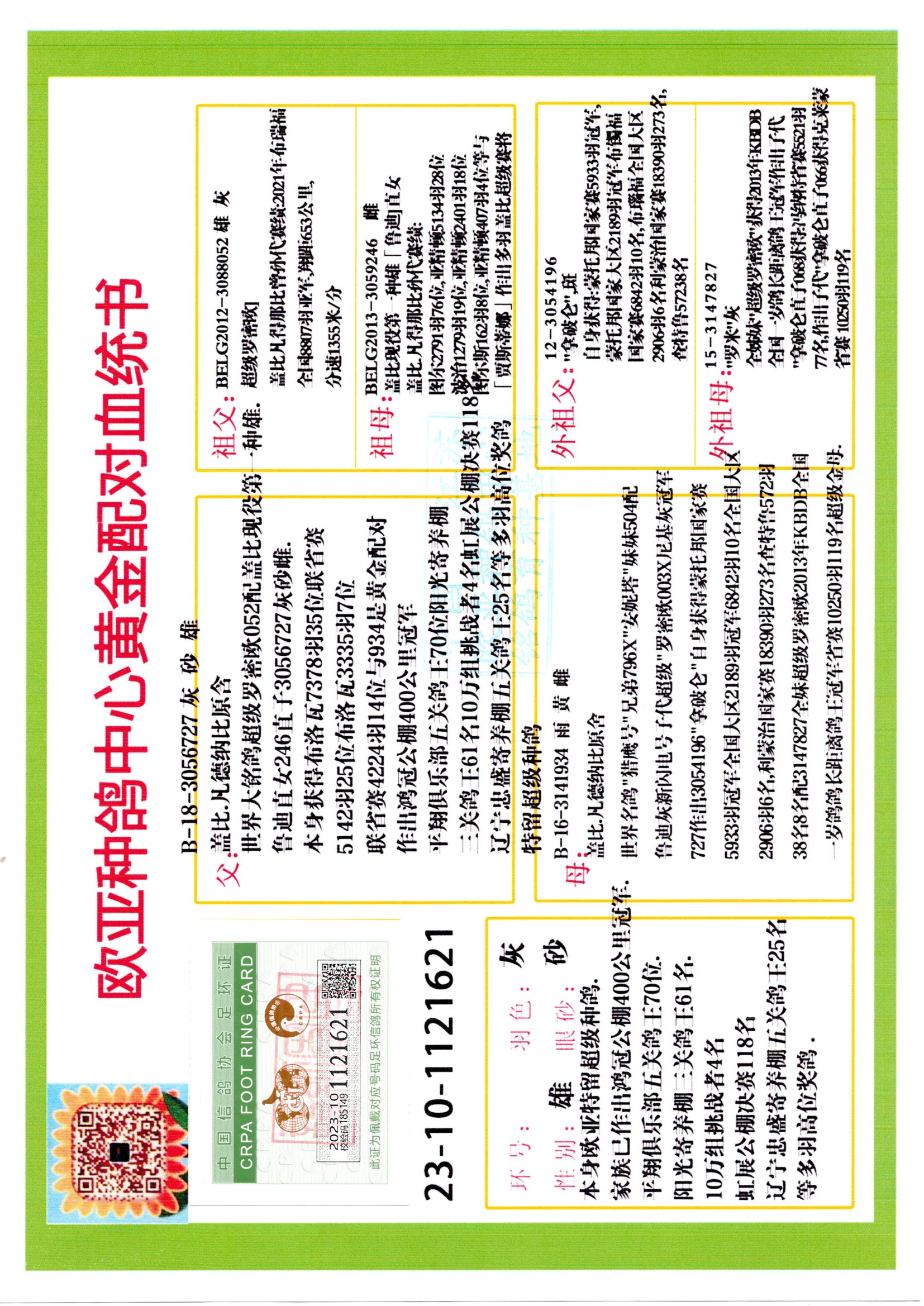 24年秋南京特比环欧亚荣获大团体冠军.小团体冠军551公里大特比13名.14名.16名.19名.20名.21名.24名.26名.27名.28名.42名.52名.54名.57名.65名.66名.68名.70名.71名.72名.74名.76名.80名.82名.83名.84名.85名.86名.90名.92名.110名.116名.121名.122名.128名.131名.158名.161名.164名.165名.166名.172名.174名.177名.182名.195名.196名.201名.205名.208名.210名.216名.253名.269名.275名.276名.294名.296名.299名,,24年秋云南天南铜都公棚决赛415名.天南铜都小棚决赛409名.云南玉活公棚决赛102名.490名.团体32名上笼二羽进二羽,天南铜都大棚506公里决赛445名。热烈祝贺河北省巨鹿县李兰生老师用欧亚泰山号血系连续十一年夺冠军,河北省国家赛冠军.全国季军等多次前十名高位,扬州王军王总用欧亚利奥24年春季获山东翔宇公棚决赛33名盖比53名。南京刘正龙刘总用欧亚盖比获得24年秋山东潍坊国际公棚决赛42名.精英赛30名.三关鸽王71名.决赛86名.加站赛16名.南京市特比环A组鸽王9名.B组鸽王5名.6名.C组鸽王5名.精英赛冠军4名.技能赛A组冠军4名.5名.秦淮区特比环荣获15名.46名.48名.87名。四川西昌徐亮徐总用欧亚利奥获得凉山州聚友决赛177名.第二关亚军双关鸽王19名.三关鸽王105名.云南豪庭公棚决赛603名。热烈祝贺24年四川重庆翔园鸽舍用欧亚泰山号荣获春季400公里冠军.秋季500公里冠军,河北王总用詹森X利奥获得千羽千翔公棚400公里冠军,广东蔡楷焕荣获24年秋爱好者 赛鸽俱乐部三关鸽王季军.一关420公里99名.二关450公里11名.三关520公里32名.单关季军.7名.12名,江西李卫兴荣获贵州红枫公棚8名.共翔俱乐部寄养棚四关综合鸽王30名.一关400公里78名.二关500公里55名.三关520公里37名.四关500公里57名.同父母获公棚18名.雷鸣获得武汉黄浦育翔中心冠军,四川陈文获得四川明鸿俱乐部300公里梦幻2名.3名.4名.9名.10名.13名.14名.15名.31名.34名.40名.41名.42名.43名.69名.71名.72名.73名.74名.94名.95名.97名.98名.99名.419公里决赛荣获总冠军7名.总共归巢9羽,四川徐亮获豪庭决赛603名,山西郑勇获得山西泰鑫公棚决赛255名詹森红狐,热烈祝贺马总获得开尔(飞跃队)决赛9名获奖金1310000万元.第一关52名,天津津福资赛180公里96名.获奖金429543万元,欧亚支持全国鸽友24年秋多人报喜 祝大家取得更好成绩,给欧亚报喜鸽友欧亚决定给每人赠送一羽超级种鸽。欧亚俱乐部特比环多关鸽王成绩:15年秋淮安特比环黑色星期一全会上笼9700多羽,当天无鸽归巢,第二天全会归巢357羽,本舍归巢158羽.前十名八羽.前一百名归巢57羽,16年春季获五关鸽王总冠军,总亚军四名.六名.七名.九名.十名.晶艺俱乐部520公里冠亚季军5名.6名.7名.9名.11名等,火车头冠军.季军6名.8名.9名.10名,16年秋晶艺俱乐部特比环520公里亚军.季军4名.6名.7名.9名,15年春南京白下特比环冠军.亚军.季军6名.7名.8名.9名.10名.指定鸽A B组获得冠军.亚军.季军4名.5名.,17年淮安特比环亚军.4名.5名.7名.8名.10名.六关鸽王总冠军.4名.6名.9名.10名,寄养棚宿迁刘总20羽特比环获冠军.季军.4名.7名.8名.9名等。18年荣获万羽特比环六关鸽王总冠军.总亚军.总季军.6名.8名.十名.单关四羽冠军.二羽亚军.四羽季军.前十名27羽。19年秋万羽特比环六关鸽王总亚军.总季军.5名.8名等,单关二羽冠军.三羽亚军.一羽季军前十名31羽。20年秋淮安市鸽会四关特比环大赛风雨无阻鸽王亚军.鸽王六名,金品俱乐部万羽特比环六关鸽王总冠军,总亚军.四名.五名.六名.七名.八名.十名.前二百名鸽王35羽,单关冠亚季军前十名四十多羽,火车头五关鸽王季军.六名.八名.前二百名鸽王十七羽。20年春荣获淮安五区一市四关鸽王总冠军.亚军.四名.八名.九名。21年秋荣获金品万羽特比环大赛六关鸽王总亚军.总季军.四名.七名.九名.十名.单关冠亚军季军前十名三十多羽。火车头协会鸽王六名.七名.十名.单关前十名十七羽。22年秋荣获鸽王总冠军.总亚军.5名.7名.8名.9名.11名.单关冠亚季军前十名三十多羽,第一关单关前二百名四十多羽,第二关前二百名三十多羽,第三关前二百名四十多羽,第四关前二百名四十多羽,第五关前一百名53羽。23年秋荣获鸽王季军.五名.八名.十名.13名.17名.20名.27名等多羽鸽王.单关前十名二十多羽。公棚.寄养棚部分成绩:16年秋宁夏黄河公棚总冠军电脑戈马力指定通炮冠军,17年送八羽参赛获得鸽王八名进奖四名,支持韩总荣获八名。支持鸽友荣获宁夏中卫公棚决赛总冠军.精英赛冠军,支持18年宁夏黄河公棚决赛冠军詹森X泰山。安徽鼎博寄养棚院内外四关鸽王总冠军.鸽王十七名.三十七名同窝,鸽王39名.42名.58名.67名。18年山东公棚预赛冠军.决赛65名.送八羽进奖五羽.指定获奔驰汽车一辆。支持鸽友获得云南蓝云公棚冠军.盖比X佛卡门。支持鸽友荣获云南银集公棚决赛冠军 詹森427X520血系 速度赛6700羽冠军。17年荣获金马俱乐部寄养棚四关鸽王总冠军.季军.六名.八名.第一关冠军.亚军.季军四名.七名.十一名.金牌教练奖。支持鸽友18年北京费翔公棚预赛九名电脑X桑杰士,支持鸽友荣获陕西威力公棚决赛11名.内蒙古临河寄养棚四关鸽王六名.詹森配泰山,支持河北王总用欧亚詹森427配胡本喜获20年秋开尔青年棚季军。云南东荣公棚16年预赛冠军.决赛77名.17年决赛12名.詹森红狐X泰山,17年平安公棚决赛4名 詹森427。欧亚获得21年金母寄养棚第一关四名.第二关5名.第三关5名.6名.7名.10名.三关鸽王总冠军,四关鸽王14名.十羽鸽王。支持河