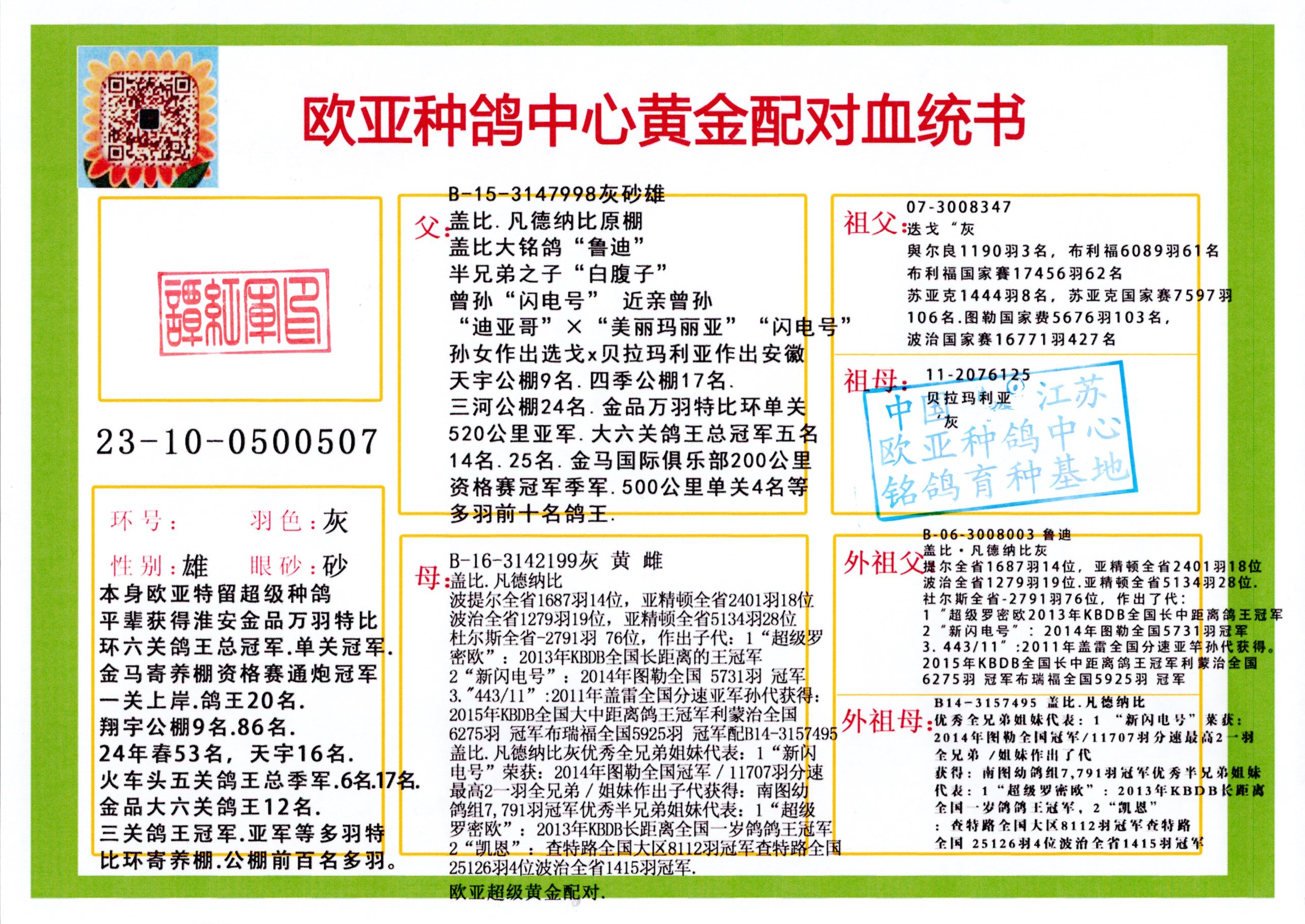 24年秋南京特比环欧亚荣获大团体冠军.小团体冠军551公里大特比13名.14名.16名.19名.20名.21名.24名.26名.27名.28名.42名.52名.54名.57名.65名.66名.68名.70名.71名.72名.74名.76名.80名.82名.83名.84名.85名.86名.90名.92名.110名.116名.121名.122名.128名.131名.158名.161名.164名.165名.166名.172名.174名.177名.182名.195名.196名.201名.205名.208名.210名.216名.253名.269名.275名.276名.294名.296名.299名,,24年秋云南天南铜都公棚决赛415名.天南铜都小棚决赛409名.云南玉活公棚决赛102名.490名.团体32名上笼二羽进二羽,天南铜都大棚506公里决赛445名。热烈祝贺河北省巨鹿县李兰生老师用欧亚泰山号血系连续十一年夺冠军,河北省国家赛冠军.全国季军等多次前十名高位,扬州王军王总用欧亚利奥24年春季获山东翔宇公棚决赛33名盖比53名。南京刘正龙刘总用欧亚盖比获得24年秋山东潍坊国际公棚决赛42名.精英赛30名.三关鸽王71名.决赛86名.加站赛16名.南京市特比环A组鸽王9名.B组鸽王5名.6名.C组鸽王5名.精英赛冠军4名.技能赛A组冠军4名.5名.秦淮区特比环荣获15名.46名.48名.87名。四川西昌徐亮徐总用欧亚利奥获得凉山州聚友决赛177名.第二关亚军双关鸽王19名.三关鸽王105名.云南豪庭公棚决赛603名。热烈祝贺24年四川重庆翔园鸽舍用欧亚泰山号荣获春季400公里冠军.秋季500公里冠军,河北王总用詹森X利奥获得千羽千翔公棚400公里冠军,广东蔡楷焕荣获24年秋爱好者 赛鸽俱乐部三关鸽王季军.一关420公里99名.二关450公里11名.三关520公里32名.单关季军.7名.12名,江西李卫兴荣获贵州红枫公棚8名.共翔俱乐部寄养棚四关综合鸽王30名.一关400公里78名.二关500公里55名.三关520公里37名.四关500公里57名.同父母获公棚18名.雷鸣获得武汉黄浦育翔中心冠军,四川陈文获得四川明鸿俱乐部300公里梦幻2名.3名.4名.9名.10名.13名.14名.15名.31名.34名.40名.41名.42名.43名.69名.71名.72名.73名.74名.94名.95名.97名.98名.99名.419公里决赛荣获总冠军7名.总共归巢9羽,四川徐亮获豪庭决赛603名,山西郑勇获得山西泰鑫公棚决赛255名詹森红狐,热烈祝贺马总获得开尔(飞跃队)决赛9名获奖金1310000万元.第一关52名,天津津福资赛180公里96名.获奖金429543万元,欧亚支持全国鸽友24年秋多人报喜 祝大家取得更好成绩,给欧亚报喜鸽友欧亚决定给每人赠送一羽超级种鸽。欧亚俱乐部特比环多关鸽王成绩:15年秋淮安特比环黑色星期一全会上笼9700多羽,当天无鸽归巢,第二天全会归巢357羽,本舍归巢158羽.前十名八羽.前一百名归巢57羽,16年春季获五关鸽王总冠军,总亚军四名.六名.七名.九名.十名.晶艺俱乐部520公里冠亚季军5名.6名.7名.9名.11名等,火车头冠军.季军6名.8名.9名.10名,16年秋晶艺俱乐部特比环520公里亚军.季军4名.6名.7名.9名,15年春南京白下特比环冠军.亚军.季军6名.7名.8名.9名.10名.指定鸽A B组获得冠军.亚军.季军4名.5名.,17年淮安特比环亚军.4名.5名.7名.8名.10名.六关鸽王总冠军.4名.6名.9名.10名,寄养棚宿迁刘总20羽特比环获冠军.季军.4名.7名.8名.9名等。18年荣获万羽特比环六关鸽王总冠军.总亚军.总季军.6名.8名.十名.单关四羽冠军.二羽亚军.四羽季军.前十名27羽。19年秋万羽特比环六关鸽王总亚军.总季军.5名.8名等,单关二羽冠军.三羽亚军.一羽季军前十名31羽。20年秋淮安市鸽会四关特比环大赛风雨无阻鸽王亚军.鸽王六名,金品俱乐部万羽特比环六关鸽王总冠军,总亚军.四名.五名.六名.七名.八名.十名.前二百名鸽王35羽,单关冠亚季军前十名四十多羽,火车头五关鸽王季军.六名.八名.前二百名鸽王十七羽。20年春荣获淮安五区一市四关鸽王总冠军.亚军.四名.八名.九名。21年秋荣获金品万羽特比环大赛六关鸽王总亚军.总季军.四名.七名.九名.十名.单关冠亚军季军前十名三十多羽。火车头协会鸽王六名.七名.十名.单关前十名十七羽。22年秋荣获鸽王总冠军.总亚军.5名.7名.8名.9名.11名.单关冠亚季军前十名三十多羽,第一关单关前二百名四十多羽,第二关前二百名三十多羽,第三关前二百名四十多羽,第四关前二百名四十多羽,第五关前一百名53羽。23年秋荣获鸽王季军.五名.八名.十名.13名.17名.20名.27名等多羽鸽王.单关前十名二十多羽。公棚.寄养棚部分成绩:16年秋宁夏黄河公棚总冠军电脑戈马力指定通炮冠军,17年送八羽参赛获得鸽王八名进奖四名,支持韩总荣获八名。支持鸽友荣获宁夏中卫公棚决赛总冠军.精英赛冠军,支持18年宁夏黄河公棚决赛冠军詹森X泰山。安徽鼎博寄养棚院内外四关鸽王总冠军.鸽王十七名.三十七名同窝,鸽王39名.42名.58名.67名。18年山东公棚预赛冠军.决赛65名.送八羽进奖五羽.指定获奔驰汽车一辆。支持鸽友获得云南蓝云公棚冠军.盖比X佛卡门。支持鸽友荣获云南银集公棚决赛冠军 詹森427X520血系 速度赛6700羽冠军。17年荣获金马俱乐部寄养棚四关鸽王总冠军.季军.六名.八名.第一关冠军.亚军.季军四名.七名.十一名.金牌教练奖。支持鸽友18年北京费翔公棚预赛九名电脑X桑杰士,支持鸽友荣获陕西威力公棚决赛11名.内蒙古临河寄养棚四关鸽王六名.詹森配泰山,支持河北王总用欧亚詹森427配胡本喜获20年秋开尔青年棚季军。云南东荣公棚16年预赛冠军.决赛77名.17年决赛12名.詹森红狐X泰山,17年平安公棚决赛4名 詹森427。欧亚获得21年金母寄养棚第一关四名.第二关5名.第三关5名.6名.7名.10名.三关鸽王总冠军,四关鸽王14名.十羽鸽王。支持河