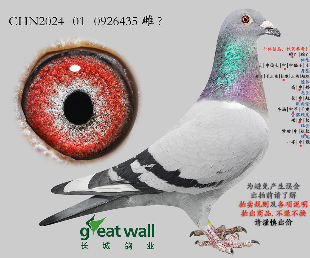 因拍卖鸽均是未做育过的种鸽或幼鸽,图内所标雌雄仅供参考,实际性别已实物为准。不做退换理由。