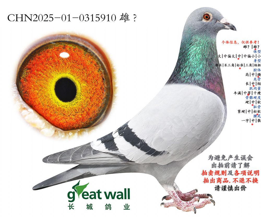 因拍卖鸽均是未做育过的种鸽或幼鸽,图内所标雌雄仅供参考,实际性别已实物为准。不做退换理由。