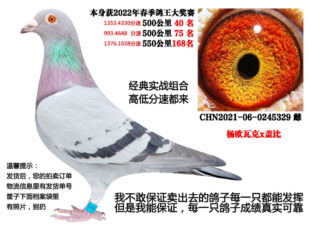 - 当前查看拍卖鸽:22年春季3次500公里,多关成绩鸽(杨